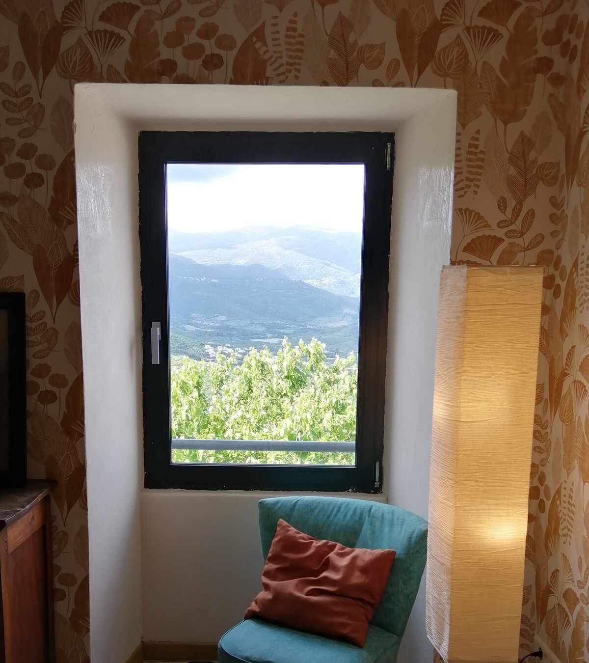 Maison de charme en pierre de la région entièrement construite par le propriétaire respectueuse de l'environnement entre mer-montagne et piscine (classement 5 étoiles ). A 5 mn des fameuses Gorges de l'Asco, rivière, cascades . A 25 mn des plus belles plages de Balagne, Ostriconi, Lozari. Dans un site préservé, au calme absolu avec une vue superbe .Ce logement est parfait pour une escapade en amoureux avec un accès privatif à la piscine à débordement des propriétaires. Internet fibre