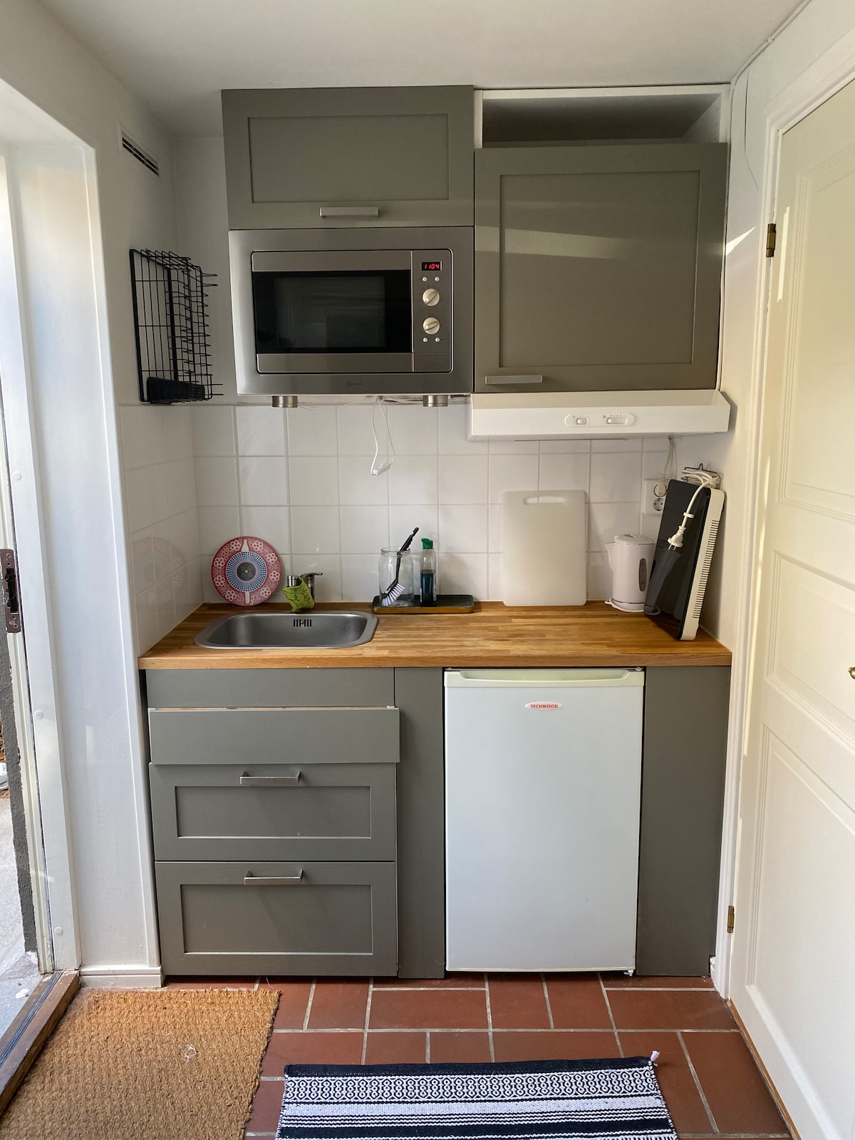 Malapit sa lahat ang espesyal na lugar na ito. May pribadong patyo sa isang liblib na patyo sa gitna ng buhay na kapitbahayan ng Linné kung saan mayroon kang pinakamagagandang restawran sa lungsod sa paligid mismo. Ang lugar ay may mahusay na alok sa kultura at napakahusay na mga link sa transportasyon na may tram hub sa loob ng 300 metro at 15 minutong lakad papunta sa sentro ng lungsod o Slottskogen. Ang apartment ay bagong itinayo at may lahat ng amenidad na maaari mong asahan bilang kumpletong kusina, paghuhugas at pagpapatayo, double bed at sofa bed (parehong 160cm).