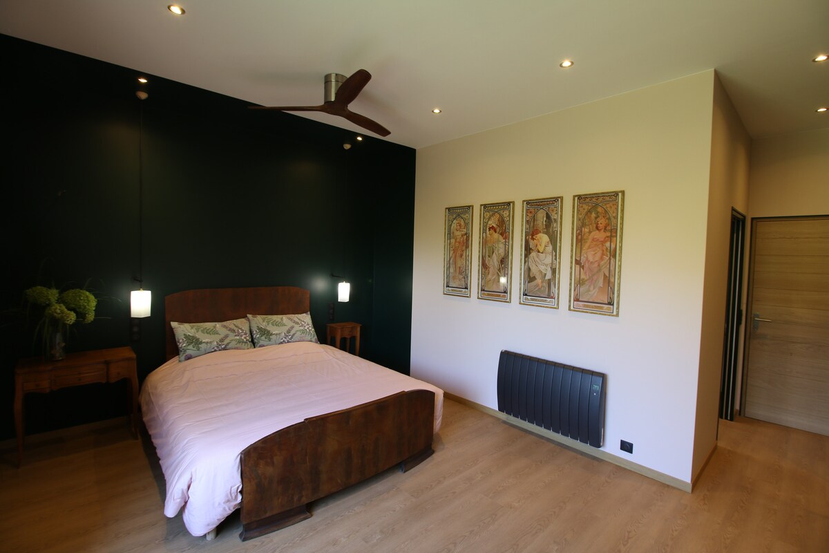 Hayaan ang iyong sarili na mahikayat ng magandang lugar na matutuluyan na ito. Sa isang malaking lumang bahay, may tagahanga ang pribadong kuwarto na 20m² sa sahig (sa ilalim ng attic). 500m² bakod hardin na may semi - shade terrace sa pamamagitan ng eucalyptus. Nagho - host din ang bahay ng napakaganda at napaka - mapaglarong maliit na aso.