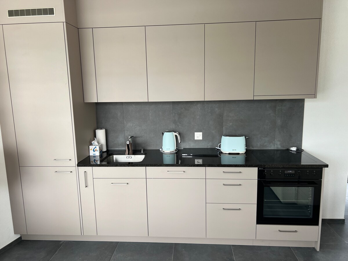 Maligayang pagdating sa aming magandang bagong apartment mismo sa Rhine! Masiyahan sa mga nakamamanghang tanawin ng ilog at isang naka - istilong modernong interior na idinisenyo para sa iyong kaginhawaan. Ang maluwang na silid - tulugan na may 1.60 m na higaan at komportableng sofa bed ay nagbibigay ng perpektong lugar para makapagpahinga. May 5 minutong lakad lang ang layo ng tram line 8, may direktang access ka sa Basel. Madaling mapupuntahan ang EuroAirport, Vitra Museum, Fondation Beyeler, at marami pang ibang atraksyon. Inaasahan namin ang pagtanggap sa iyo!