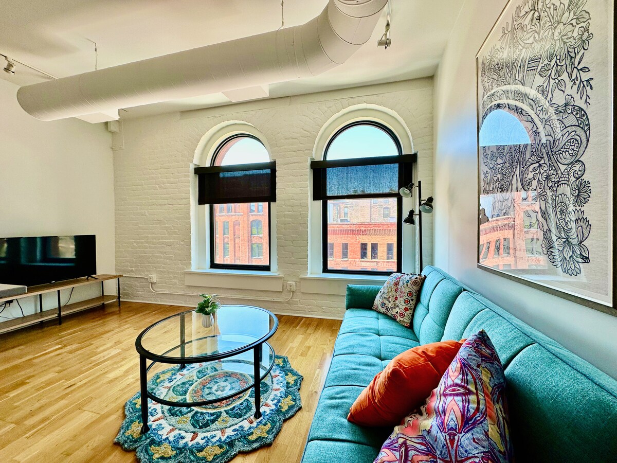Matatagpuan sa loob ng Woolworth Building - isang makasaysayang landmark sa Old Market. Nagtatampok ang aming 2 higaan, 2 banyo ng modernong dekorasyon habang pinanatili ang mga makasaysayang detalye ng gusali. Hardwood na sahig, solidong counter sa ibabaw, washer/dryer, fitness center at mga stainless steel na kasangkapan sa kabuuan. Sa pamamagitan ng magandang tuluyan na ito, madaling mapupuntahan ang mga restawran, tindahan, at destinasyon sa downtown. Wala pang isang milya ang layo/biyahe papunta sa TD Ameritrade Park (CWS) at CHI Health Center Arena (Swim Trials, Berkshire +higit pa).