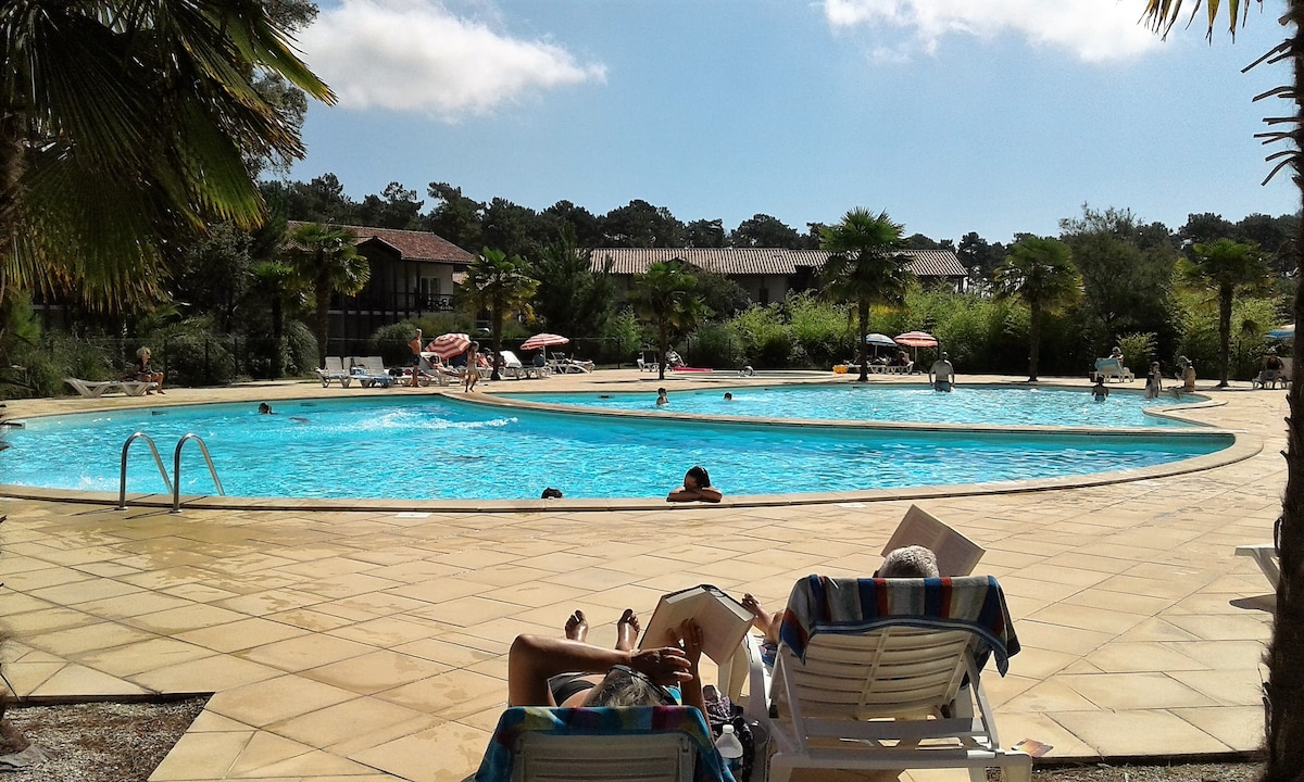 Kumpleto ang kagamitan sa studio na may maliit na pribadong pool, pati na rin ang air conditioning. Ilang minuto mula sa beach at sa sentro ng lungsod. Tahimik at luntiang kapaligiran. Available ang 2 bisikleta. Malapit sa Hossegor, Capbreton, Biarritz Lahat ng bagay ay maaaring gawin sa pamamagitan ng paglalakad o sa pamamagitan ng bisikleta. Sa tag - init, may libreng beach shuttle na 300 metro. Nauupahan ng mga sapin, tuwalya, at produktong panlinis. Mga may sapat na gulang lang.