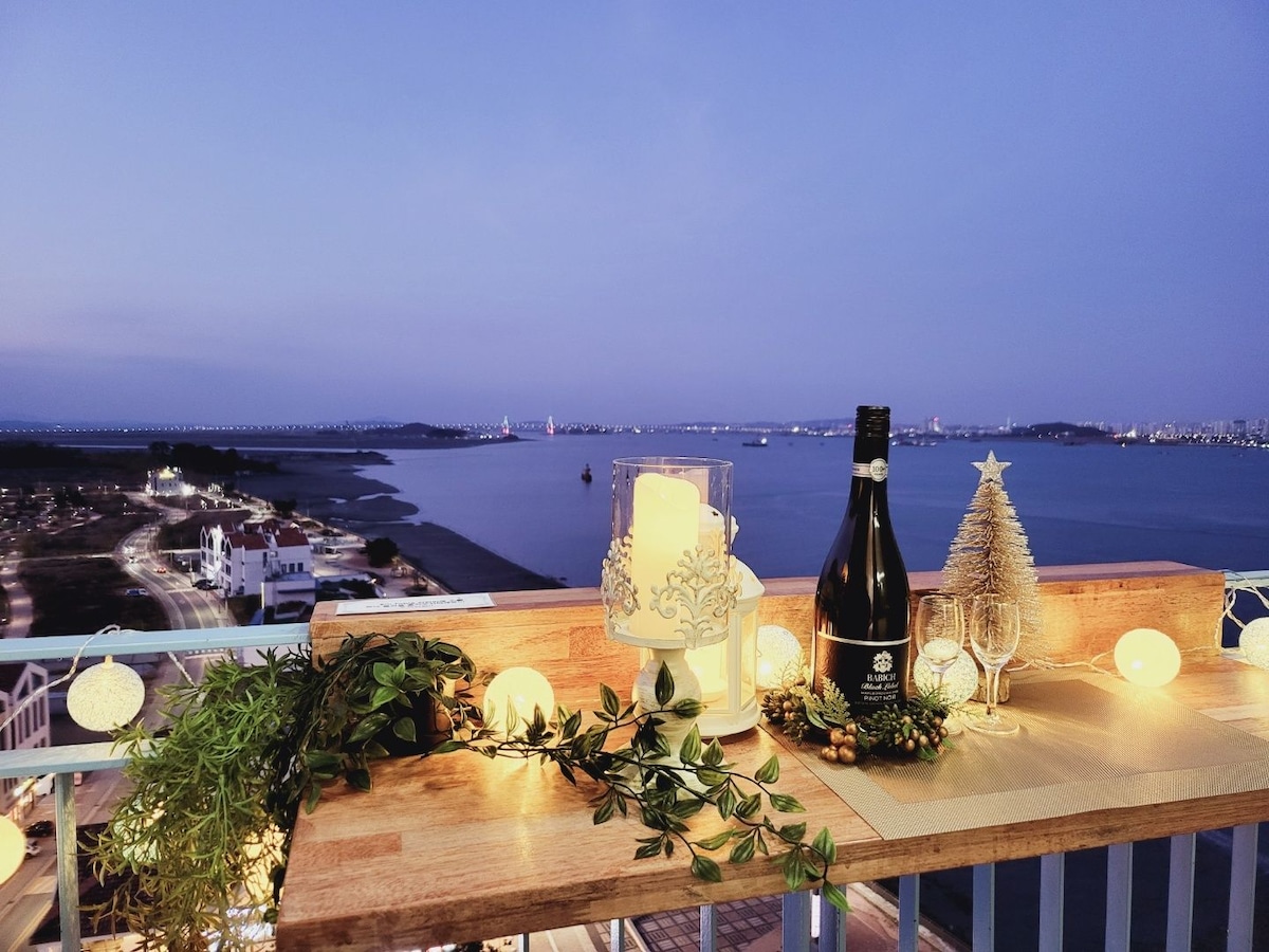Isang nakapagpapagaling na lugar para sa iyo na nag - iisa sa pamamagitan ng๐ dagat at starlight. Kung saan mas ๐ magkakasama tayo, mas masaya tayo Sa terrace ๐ sa pribadong naman Barbecue time kasama ng mga mahal sa buhay Isang lugar kung saan namamalagi ๐ ang iyong puso. Starlight sensibility sa kalikasan. Isang araw ๐ lang dapat ng pahinga ang dapat na espesyal... ๐ Ganghwa Sights. Libangan. Gabay sa mga polyeto Naka - attach sa iyong listing! ๐ Karanasan sa Mudflat mula sa Minmuru Beach < 3 minuto sa pamamagitan ng kotse >. Puwede mo ring gawin ang Harujil! ~^^ Masisiyahan ka sa bawat sandali ng pagsikat๐ ng araw at paglubog ng araw sa lahat ng kuwarto! Ocean View + Starlight Sensibility + Pribadong Terrace + Rooftop sa itaas ng Kuwarto