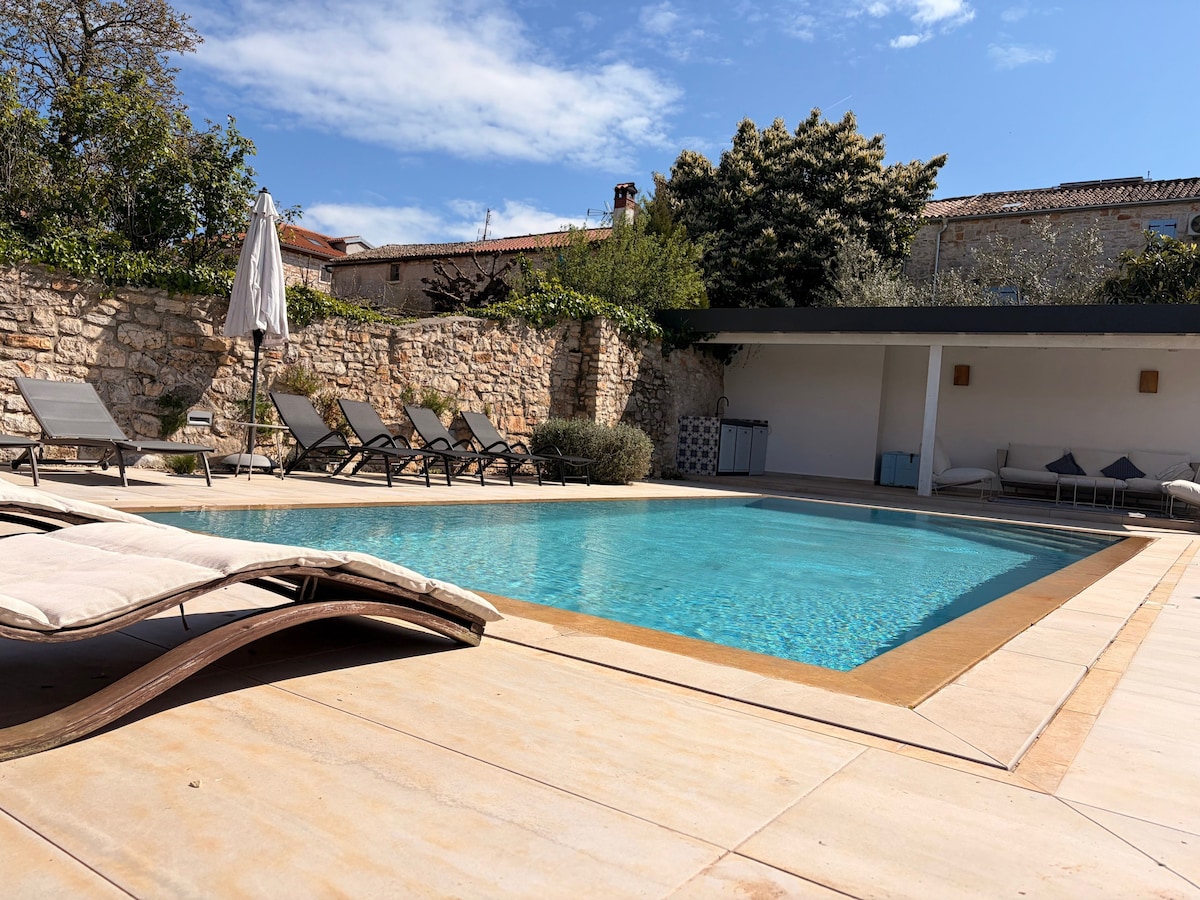 Maganda at moderno ang disenyo ng Villa Itea na malapit sa Poreč at mainam ito para sa tahimik at nakakarelaks na bakasyon sa Istria. Siguradong magsasaya ang buong grupo sa malaking swimming pool, mga bisikleta, at electric scooter. Sa bakuran ng magandang bakasyunan na ito sa Itea, may heated pool na 26m2 at sapat na upuang pang‑deck para sa buong grupo. Ang silid-kainan sa labas at kusina sa tag-init ay ang perpektong lugar para maghanda ng hapunan at mag-enjoy sa paglubog ng araw.
