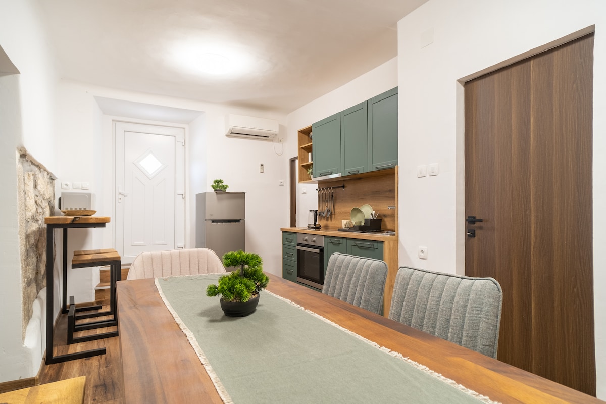 A peaceful private retreat just outside Dubrovnik, within easy reach of beaches, shopping, and the Old Town. Surrounded by greenery and designed for privacy, this home invites you to slow down, disconnect, and enjoy a calm, natural rhythm. In season, guests are welcome to pick organic fruits and vegetables grown on the property. Private Finnish sauna included in price. Use free bicycles to explore the area!