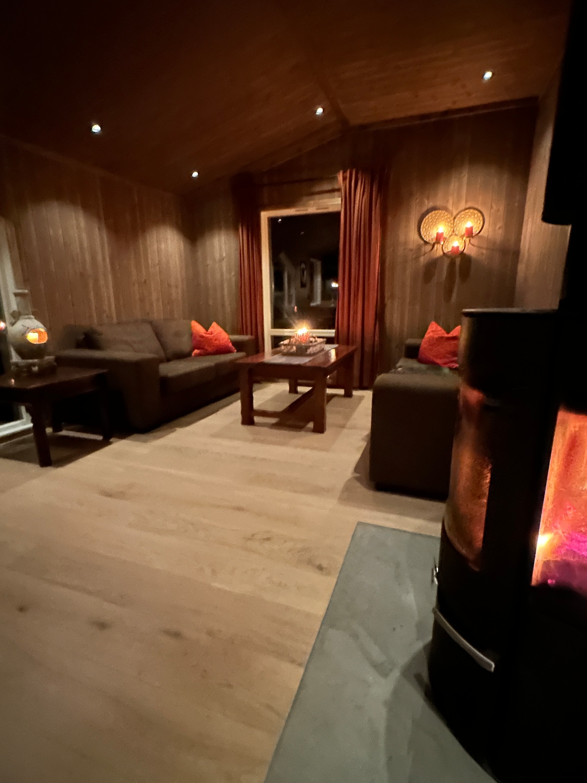 Isang maginhawang cabin na may magandang mountain atmosphere at malalaking bintana na may magandang tanawin na nag-aanyaya sa iyo para sa magagandang araw sa bundok. Ang cabin ay matatagpuan sa gitna ng magandang hiking terrain kung saan may ski in/out sa isang malaking inihanda na network ng mga track para sa cross-country skiing, bilang karagdagan sa 20 minutong layo sa ski center. Malaking maaraw na terrace na may recessed jacuzzi kung saan maaari mong tamasahin ang araw buong araw.