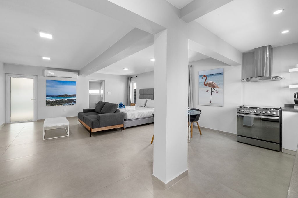 Matatagpuan ang Lagoon Studios sa gitna ng Oranjestad, 2 -3 minutong lakad lang papunta sa beach at sa Seaport and Renaissance Malls. Mula sa iyong malinis, moderno, naka - istilong studio, madali ka ring makakapaglakad papunta sa mga restawran, bar, nightlife, casino, sinehan, supermarket, at bangko.