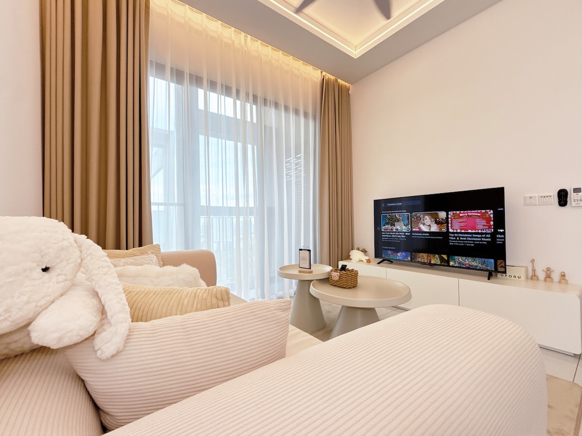 Pumunta sa luho sa aming bagong 2 - bedroom, 1 - bath black - and - white na may temang apartment sa RNF ng Johor Bahru. Perpekto para sa mga pamilya o mag - asawa, nagtatampok ang modernong tuluyan na ito ng PS4 at Mahjong para sa walang katapusang kasiyahan. Ang makinis na disenyo at mga likhang sining ay gumagawa ng isang pamamalagi na karapat - dapat sa Instagra. Matatagpuan malapit sa mga nangungunang atraksyon, masisiyahan ka sa parehong kaginhawaan at estilo. Mag - book na para sa isang chic staycation o nakakarelaks na bakasyon!
