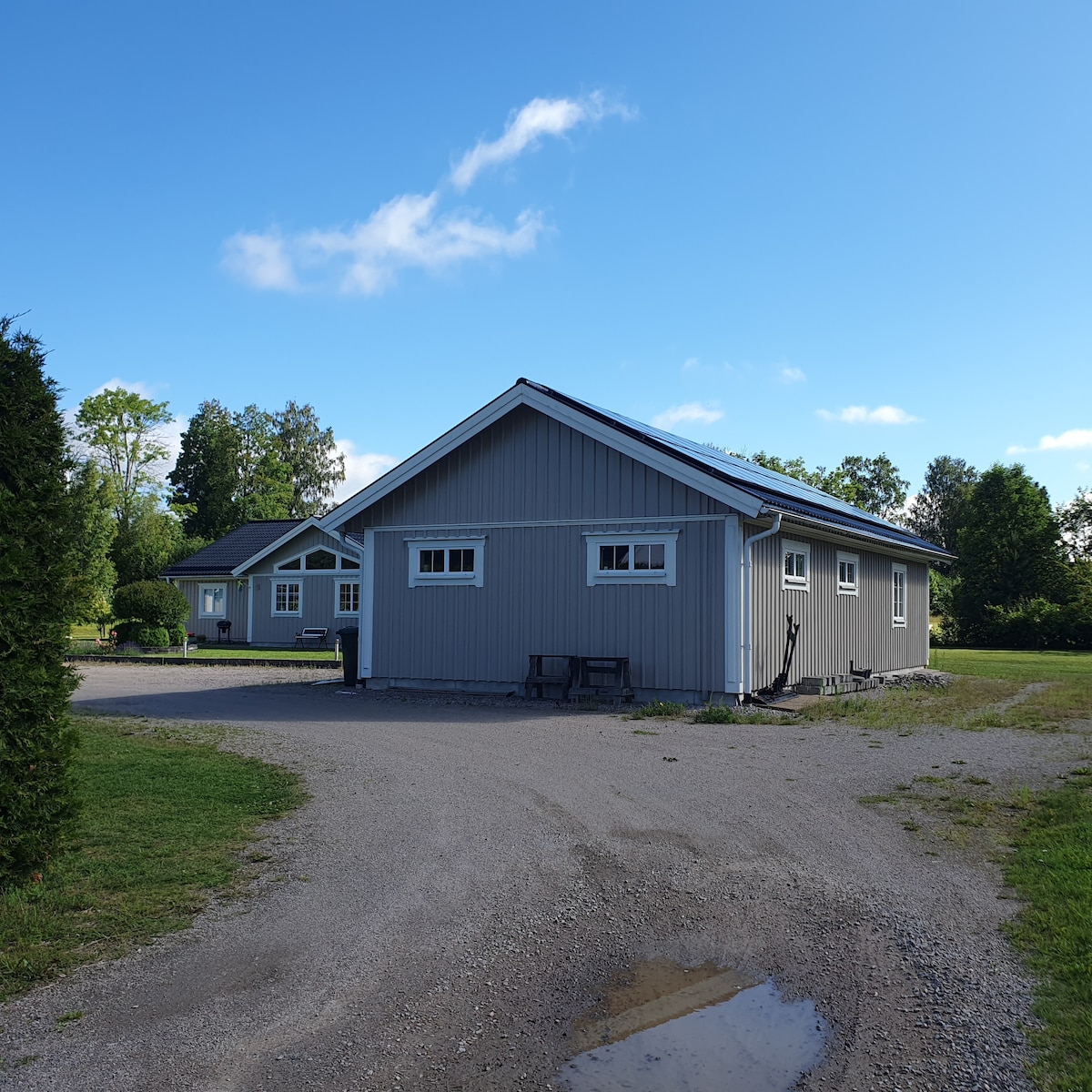 Maligayang pagdating sa Lanna, isang tahimik at tahimik na lugar. Isang humigit - kumulang 40 sqm na guest house. Nilagyan ang cottage ng double bed na 2×90 cm, 140 cm na sofa bed, open plan dining area. May toilet na may shower at kusina na may refrigerator. TV, WiFi, Chromecast Kasama ang mga linen ng higaan, tuwalya/tuwalya sa paliguan. Gumagawa ang mga bisita ng sarili nilang mga higaan. Libreng Paradahan. Golf resort sa Lanna Lodge: 1,3 km Hintuan ng Bus: 450m Walang tao sa grocery store (24/7): 1,3 km I - vacuum at linisin ng mga bisita ang kusina at toilet sa pag - alis.