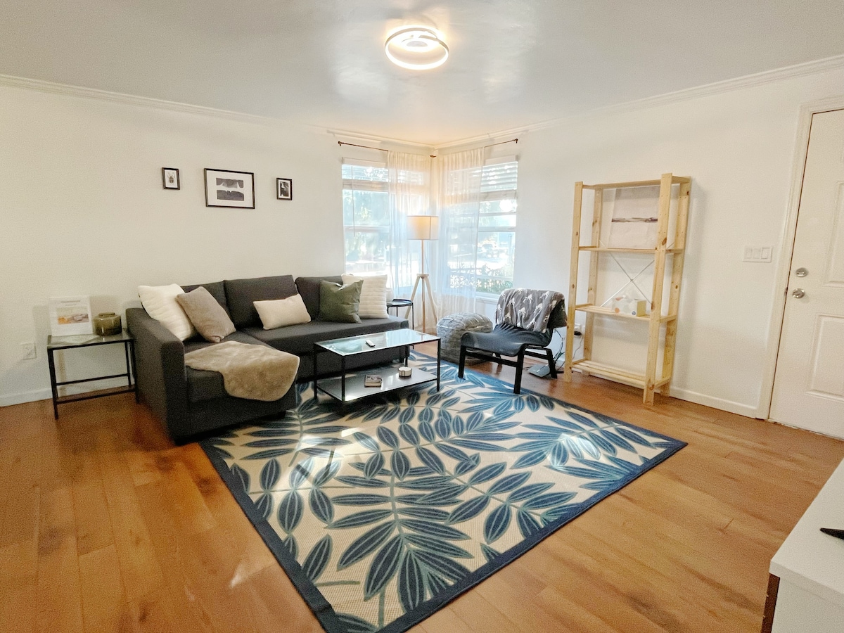 Ang lugar ay isang mahusay na hinirang, komportableng studio apartment. Ito ay isang adu sa likod ng pangunahing bahay. Ibinibigay ang lahat ng amenidad na gusto ng isa (wifi, internet, cable TV, washer at dryer, refrigerator, dishwasher, kalan, microwave, AC, mga kagamitan sa pagluluto, atbp., atbp.). Ito rin ay napaka - moderno at malinis, na may pribadong pasukan at walang susi na pasukan. Malapit sa maraming restawran, bar, at coffee shop.
