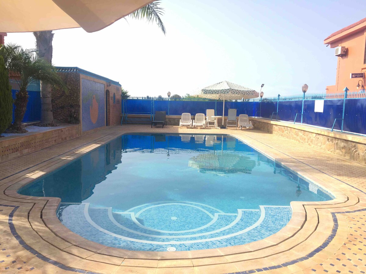 Un gîte unique en son genre par son architecture typique, son charme et son niveau de confort, situé à 5km du centre de la ville de Berkane, il offre une vue panoramique sur des plantations d'agrumes. Le Gîte se trouve à 40 min de l'aéroport d'Oujda, à 70 min de l'aéroport de Nador, à 15 min de la montagne de Zegzel et Tafoughalt et à 15 min de la station balnéaire de Saïdia.