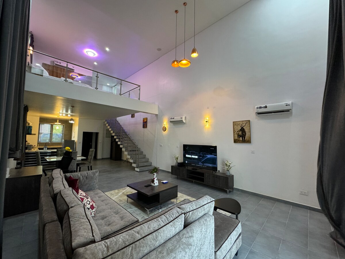 Kaakit - akit na pang - industriya na katangian at premium na komportableng tuluyan. Maaliwalas na paglalakad ang layo mula sa shopping, kainan at nightlife ng Admiralty Way, Lekki Phase 1. Magrelaks sa swimming pool o mag - enjoy sa mga pelikula sa satellite, Netflix o Amazon. Superfast optic - fiber wi - fi. Walang tigil na pag - back up ng kuryente ng generator para sa 24/7 na kaginhawaan ng AC. Tahimik na apartment. Hindi angkop para sa anumang pagtitipon. Mahigpit na hindi naninigarilyo. Huwag i - book ang apartment na ito kung naninigarilyo ang sinumang nilalayong bisita.