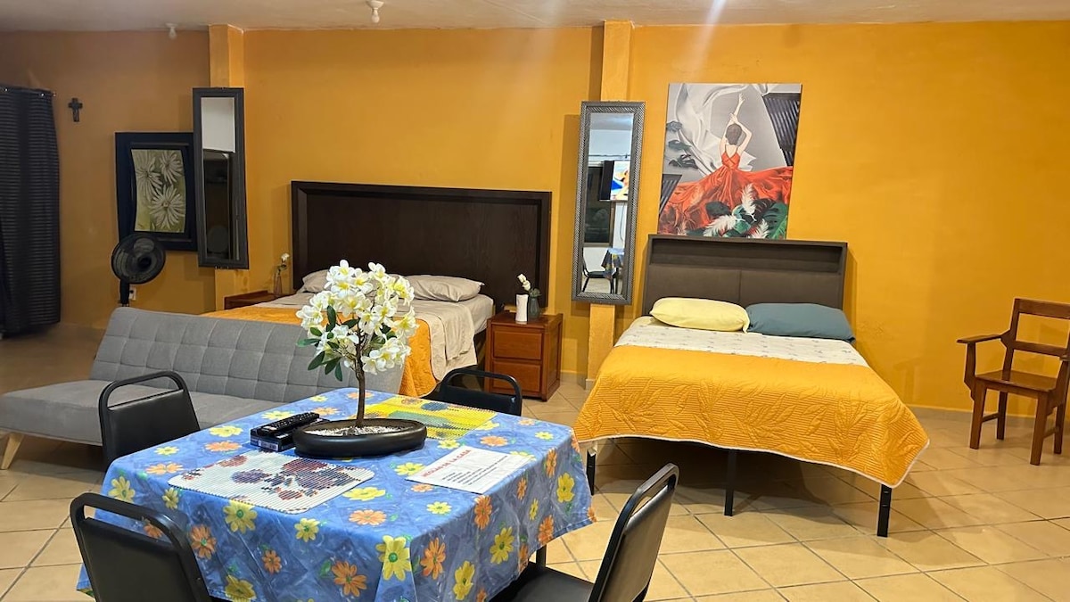 Magrelaks kasama ang pamilya sa magandang loft na ito, Mayroon kaming pagsingil para sa tuluyan. Ang perpektong lugar para magpahinga pagkatapos maglibot sa mga atraksyong panturista na inihahandog sa iyo ng magandang bayang ito. Napakagandang lokasyon na 3 bloke lang mula sa terminal ng ADO, malapit sa mga restawran, pizzeria, supermarket, Iglesia, at museo. May pribadong paradahan ito, isang napakaligtas na lugar. Malapit sa Covadonga Hospital, at 10 minuto mula sa IMSSS Hospital at Concordia Hospital.