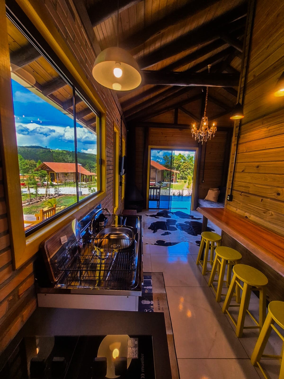 Bagong cabin. Tuklasin ang likas na katangian ng kalikasan na napapaligiran ng kagubatan, ilog, at talon. Eksklusibong ilog na malapit lang sa pinto at may malinaw na tubig na magandang pahingahan. Katahimikan, pag-iingat, at kapayapaan. Maingat na piniling muwebles at premium trousseau — bedding, bath at ang buong linya ng mga kagamitan na idinisenyo upang mag-alok ng kaginhawaan at mabuting pakikitungo sa bawat detalye. Isang kanlungan para sa mga espesyal na sandali.
