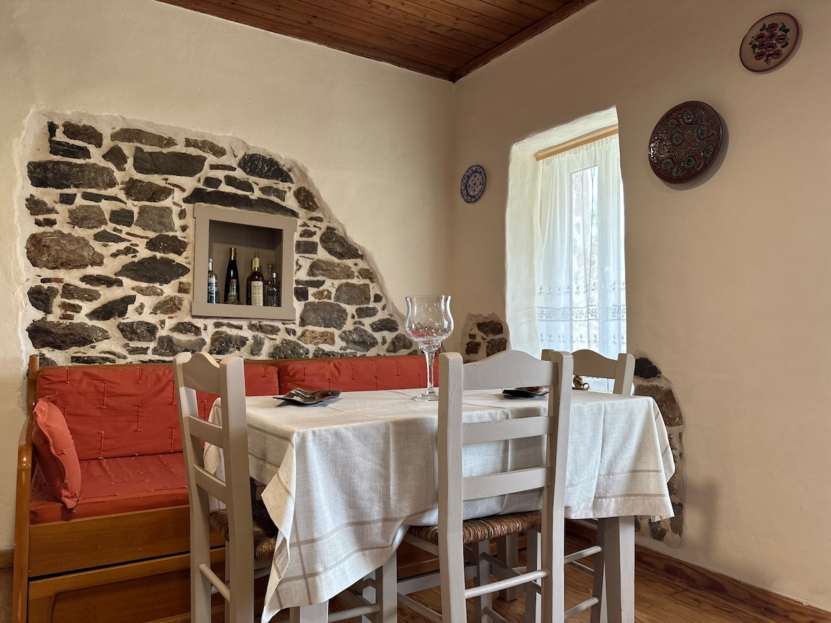 Το σπίτι αυτό κατοικήθηκε από ανθρώπους που αγαπούσαν τον τόπο τους και την φύση. Διαθέτει κρεβατοκάμαρα με διπλό κρεβάτι, σαλόνι με καναπέ-κρεβάτι, κουζίνα και μπάνιο. Έχει βεράντα με θέα στο Πέλαγος και μια μεγάλη αυλή με θέα στο βουνό. Βρίσκεται σε κοντινή απόσταση από εστιατόρια, σούπερ μάρκετ και παραλίες. Η γύρω περιοχή προσφέρει άφθονες ευκαιρίες για πεζοπορία, κολύμπι, αναρρίχηση ή χαλάρωση. Στην τιμή περιλαμβάνεται και ο νόμιμος φόρος ανά ημέρα.