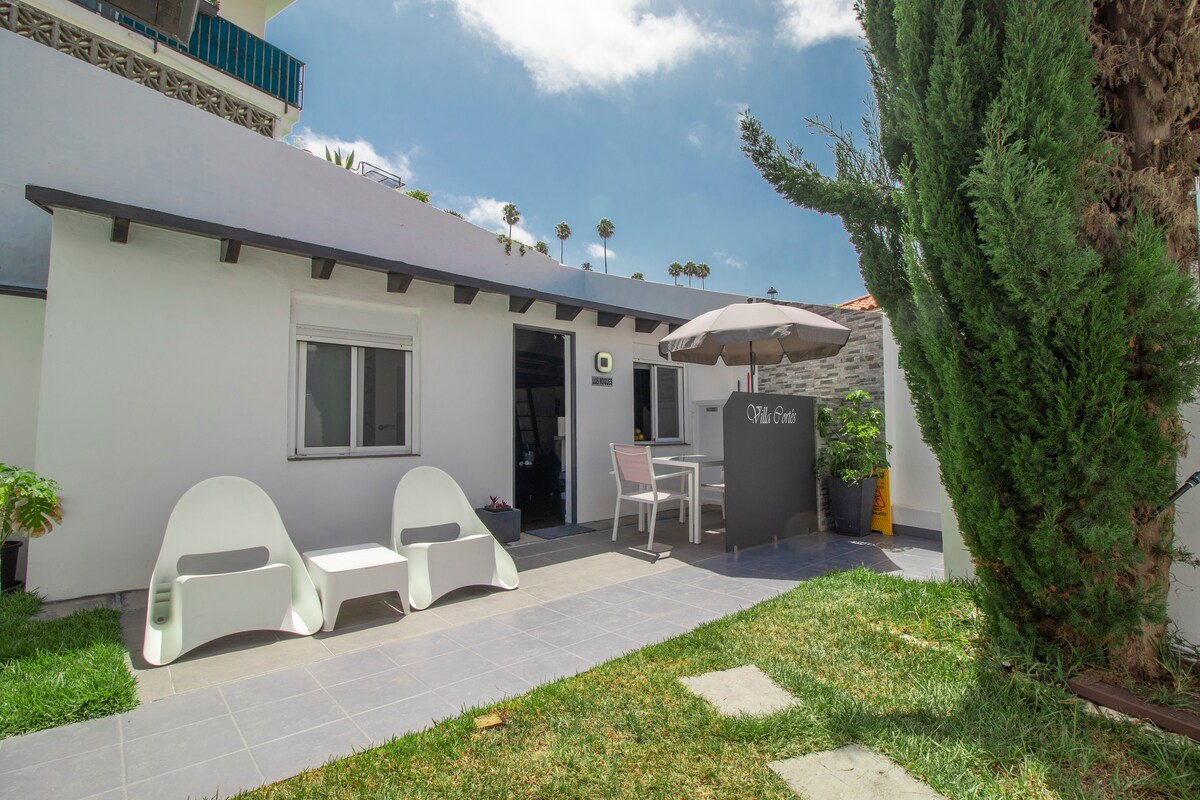 Estudio con entrada independiente, cómodo y funcional, ideal para 2 personas. Forma parte de nuestra casa y combina privacidad con un ambiente acogedor. Destaca su amplia terraza con solárium, un espacio perfecto para relajarse, leer o disfrutar del aire libre tras un día de playa. Ubicación excelente en Puerto de la Cruz: a solo 1 minuto de Playa Jardín y 5 minutos de Plaza del Charco, con restaurantes, ocio y servicios muy cerca.