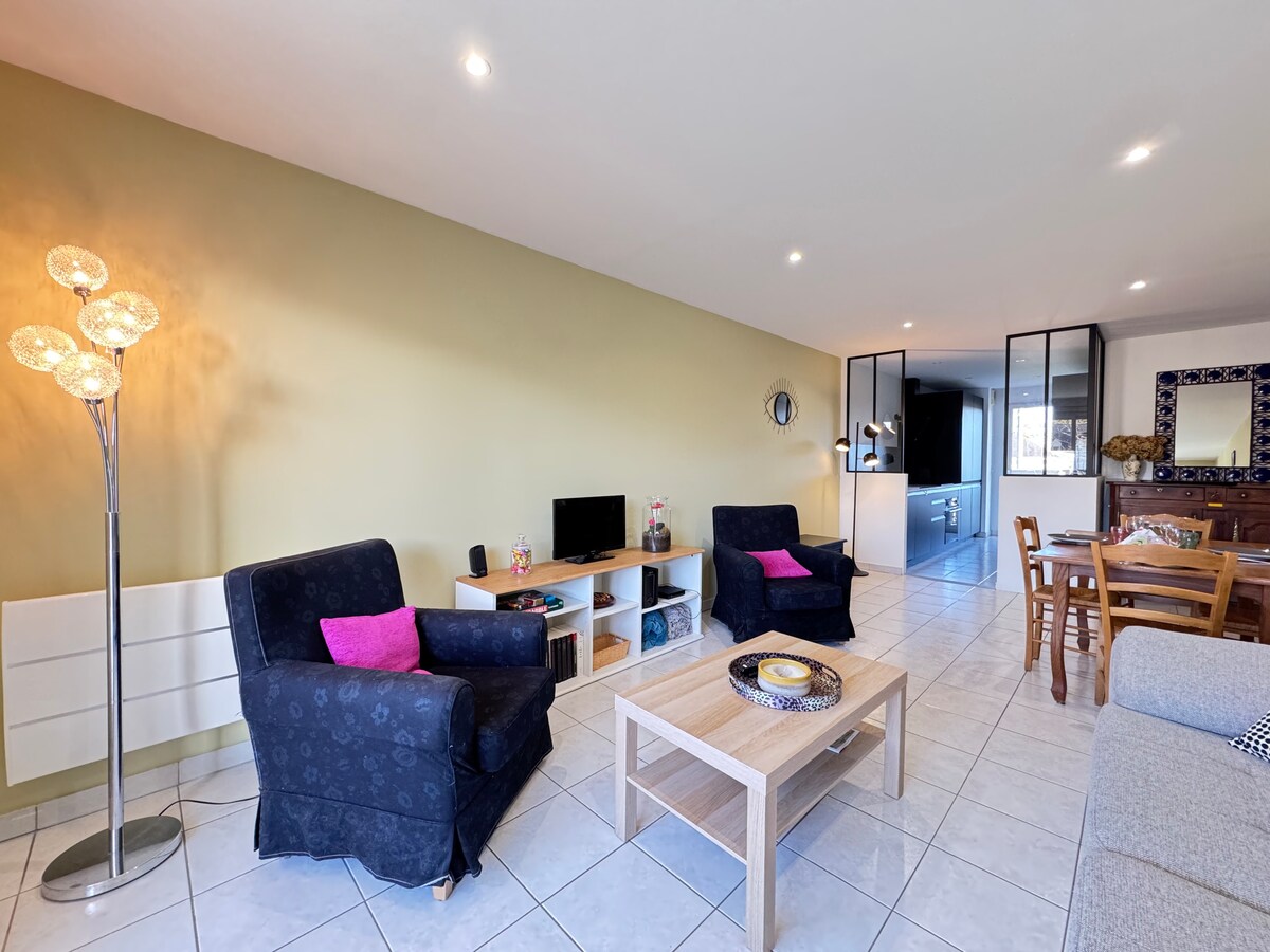 Orvault, Périphérie de Nantes, 10 minuto mula sa Beaujoire, 15 minuto mula sa sentro ng lungsod. Binubuo ang tuluyan sa outbuilding ng malaking sala, maliit na kusina ( mini oven, dishwasher, microwave. Silid - tulugan sa itaas (mga higaan 160 at 90). Double sofa bed sa sala. Shower room na may walk - in na shower. Available: kape, tsaa. Malayang access kung saan matatanaw ang hardin. Hindi sarado ang saklaw na paradahan. Maximum na 5 tao