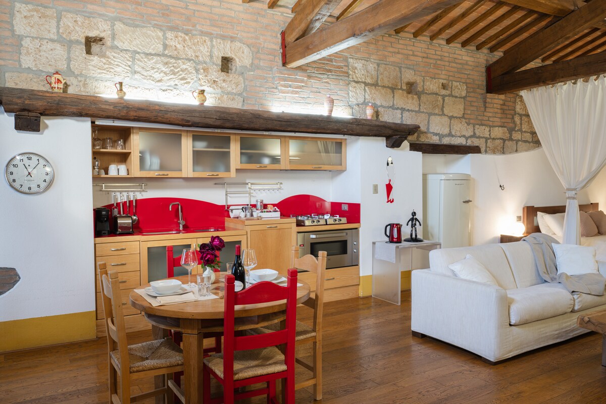 The Suite Apartment Voltumna is a big open space located in the historical heart of the city of Orvieto, just two hundred meters from its splendid Gothic Cathedral. You will appreciate it for: its location, atmosphere, neighborhood, and indoor and outdoor spaces. The residence is suitable for couples, solo adventurers, and business travelers. A couple of highlights: a private garden to enjoy a glass of wine and a multifunctional shower with a sauna for two people.