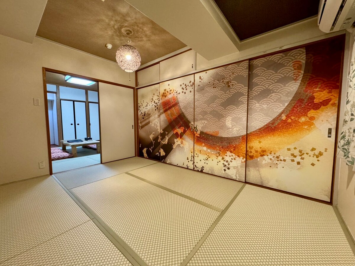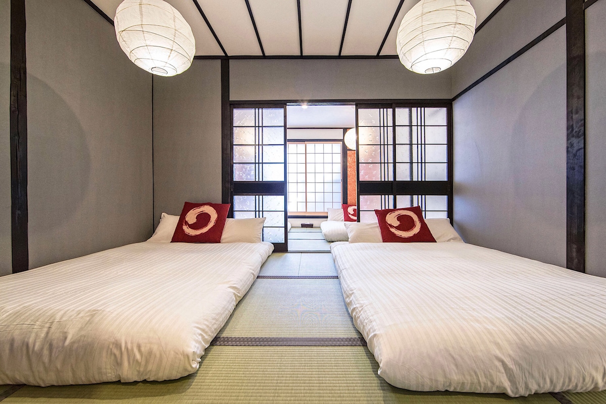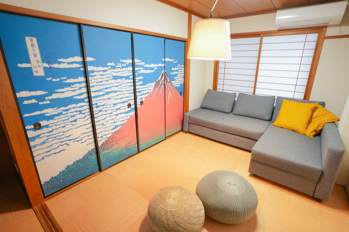 ●Direktang Access mula sa Kansai Airport JR Kansai Airport → JR Bentencho (55min) ●Mga Pinakamalapit na Istasyon Osaka Metro Bentencho: 6 na minutong lakad JR Bentencho: 9 na minutong lakad 🌸Maximum na 8 bisita (pinakamainam para sa 6) 🌸3 Silid - tulugan, kabilang ang malaking solidong kahoy na stage bed para sa family - style na pagtulog Pinalamutian ng 🌸klasikong likhang sining ng Japan ang kisame Ruta 🌸na mainam para sa mga nagsisimula pa lang. Simple, main - road na ruta - walang mahirap na backstreets. 🌸Paraiso ng Mahilig sa Pagkain sa Minato Ward Mga tagong yaman at sikat na malalaking bahagi na restawran ilang minuto lang ang layo!