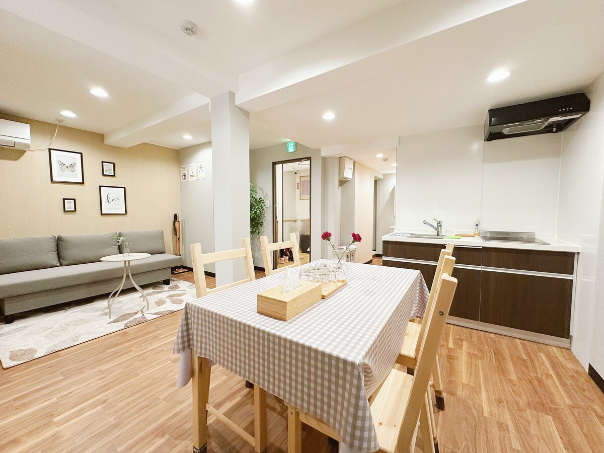 Nag - aalok ang Osaka Nipponbashi homestay house ng mainit - init na opsyon sa matutuluyan na may estilo ng pamilya, na angkop para sa mga biyaherong bumibiyahe nang may kombinasyon ng pamilya.Matatagpuan ang homestay sa isang maginhawang lugar malapit sa istasyon ng Nipponbashi, at puwede kang maglakad papunta sa mga sikat na lugar tulad ng Dotonbori, Shinsaibashi, Nipponbashi (), merkado ng Kuromon, atbp. Kabilang sa mga feature ang: Kumpleto ang kagamitan: Nagbibigay ang karamihan sa mga homestay ng Wi - Fi, air - conditioner, heater, washing machine, washing machine, toiletry, hair dryer, kusina sa kuwarto, para makapagluto ang mga bisita nang mag - isa, at maranasan ang natatanging lasa ng lutuing Japanese nang mag - isa. Iba 't ibang uri ng kuwarto: Kapag hinihiling, puwede kang pumili ng lugar na angkop para sa mga single, mag - asawa o pamilya, kasama sa mga uri ng kuwarto ang double bed, single bed, atbp. para sa hanggang 4 na tao. Komportable: Nag - aalok ang property ng tulong na pag - check in, tulad ng late pick - up/drop - off machine o sariling pag - check in para matiyak na mayroon kang komportableng kapaligiran sa pamumuhay habang bumibiyahe.Malapit sa homestay: Wafukan Dongbo Izakaya, eel rice restaurant, family mart on walking 10s, travel supplies ATM machine available.Maraming vending machine sa nakapaligid na lugar na may magandang lokasyon at kumpletong homestay ang perpekto para sa panandaliang pamamalagi o pangmatagalang pamamalagi sa Osaka.Kasama sa mga single, couple o family home, uri ng kuwarto ang double, twin, atbp. Puwedeng tumanggap ng hanggang 4~6 na tao. Mamalagi sa sentral na lugar na ito para masiyahan ang iyong pamilya sa kaginhawaan ng pagiging malapit sa lahat.