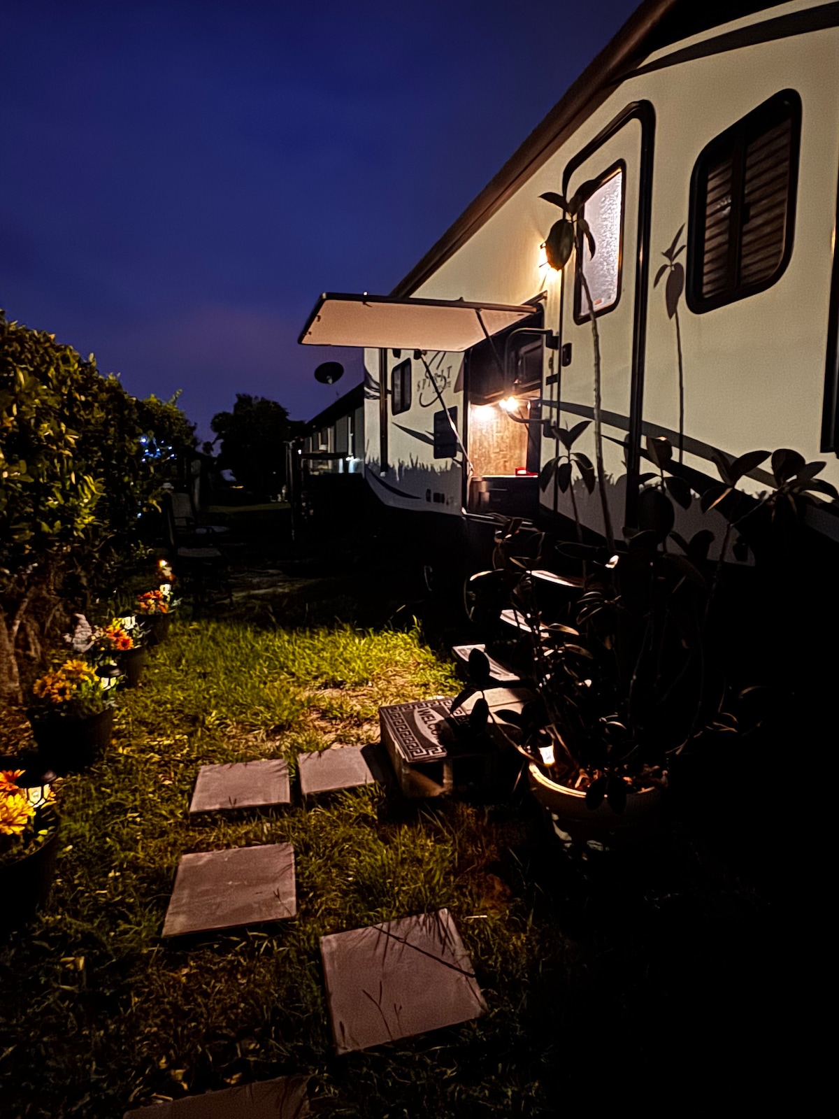 Tumakas sa aming kaakit - akit na camper, na matatagpuan sa isang ektarya ng katahimikan. Nakatira ang mga may - ari sa harap na kalahating lote, na tinitiyak ang ligtas at ligtas na kapaligiran. Sa tabi ng camper ay isang maliit na bahay, na magagamit din para sa upa. Nag - aalok ang Santana ng perpektong timpla ng paghihiwalay at lapit sa mga pinaka - iconic na destinasyon sa Florida. -32 minuto papunta sa downtown Orlando -20 min sa airport -30 minuto papunta sa Disney World at Universal Studios. -1 oras ang layo sa pinakamalapit na beach -15 minuto mula sa Silver Spurs arena