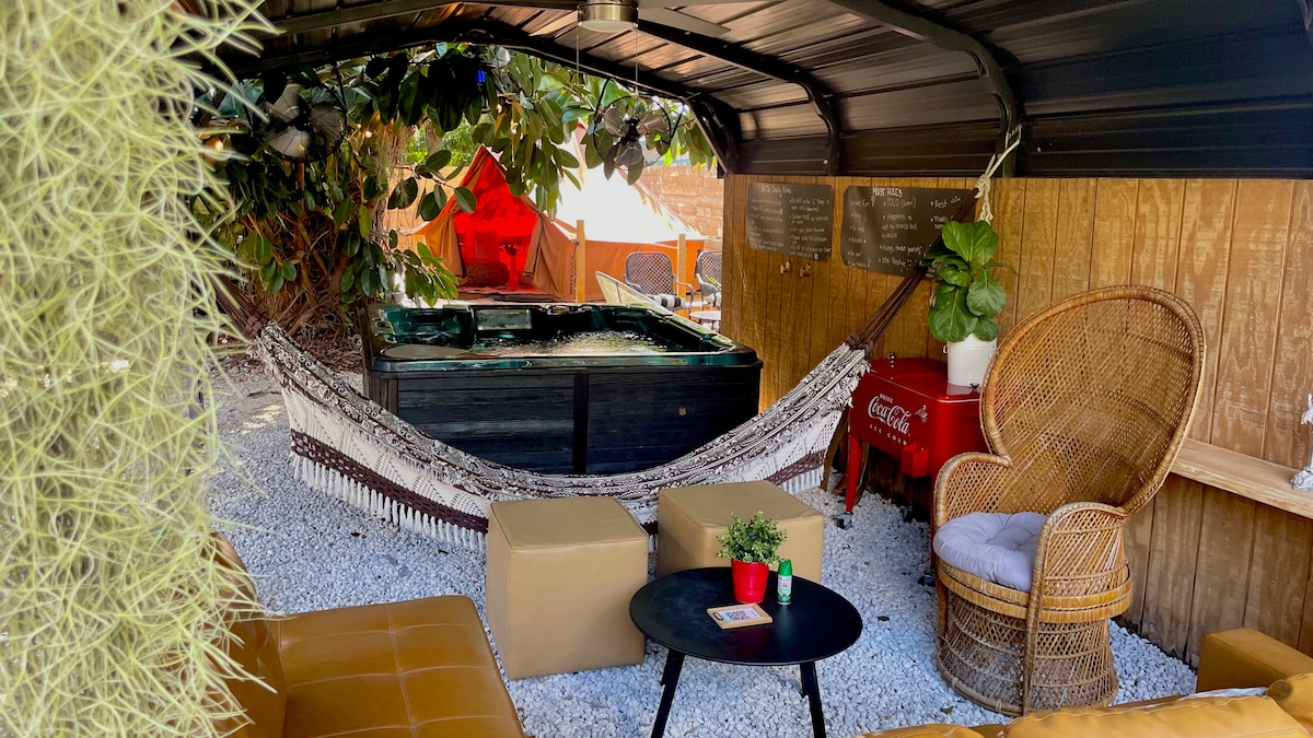 templo at A/C glamping sa ilalim ng 120 y/o puno ng oak