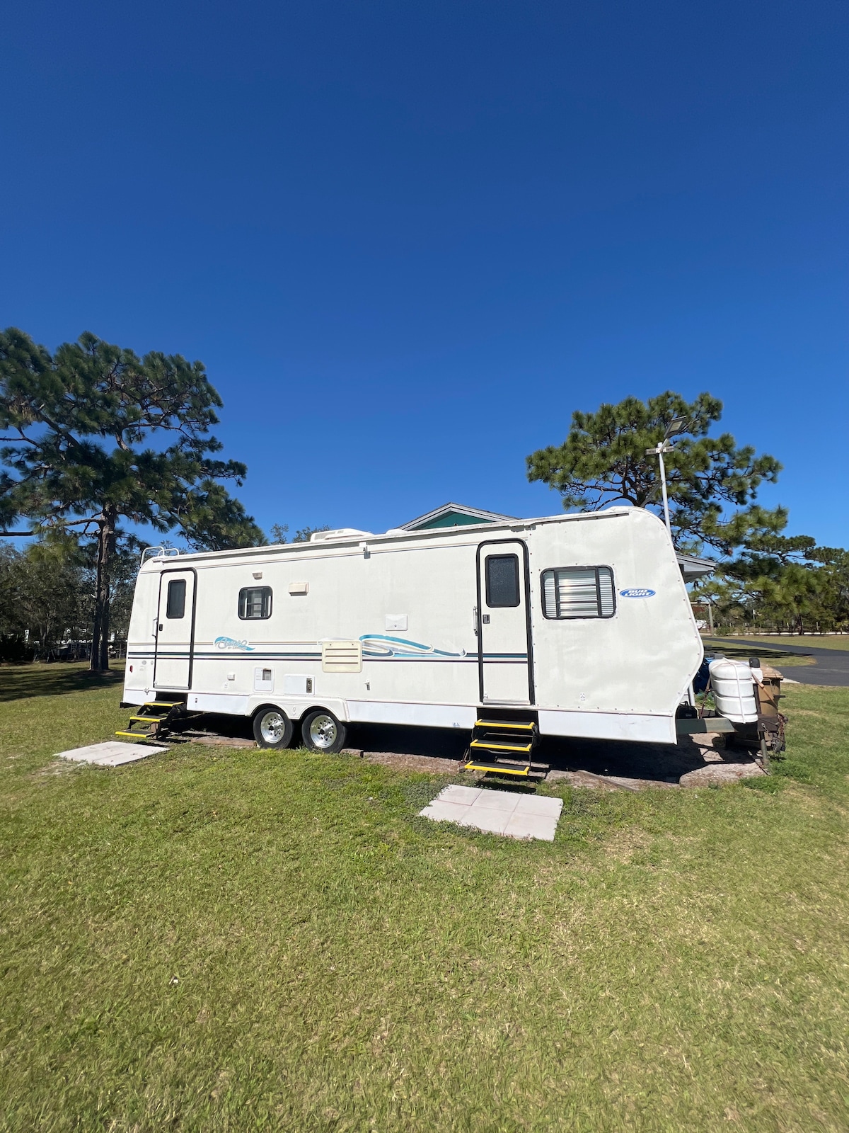 Escape to our charming camper, nestled on an acre of tranquility. The owners reside in the front half lot, ensuring a safe and secure environment. Adjacent to the camper is a tiny house, that is also available for rent. Santana offers the perfect blend of seclusion and proximity to Florida's most iconic destinations. -32 min to downtown Orlando -20 min to the airport -30 min to Disney World & Universal Studios. -1 hour away to the nearest beach -15 min from Silver Spurs arena