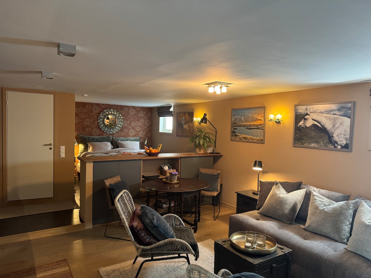 Maginhawang apartment sa basement na may magandang tanawin (nang walang TV)