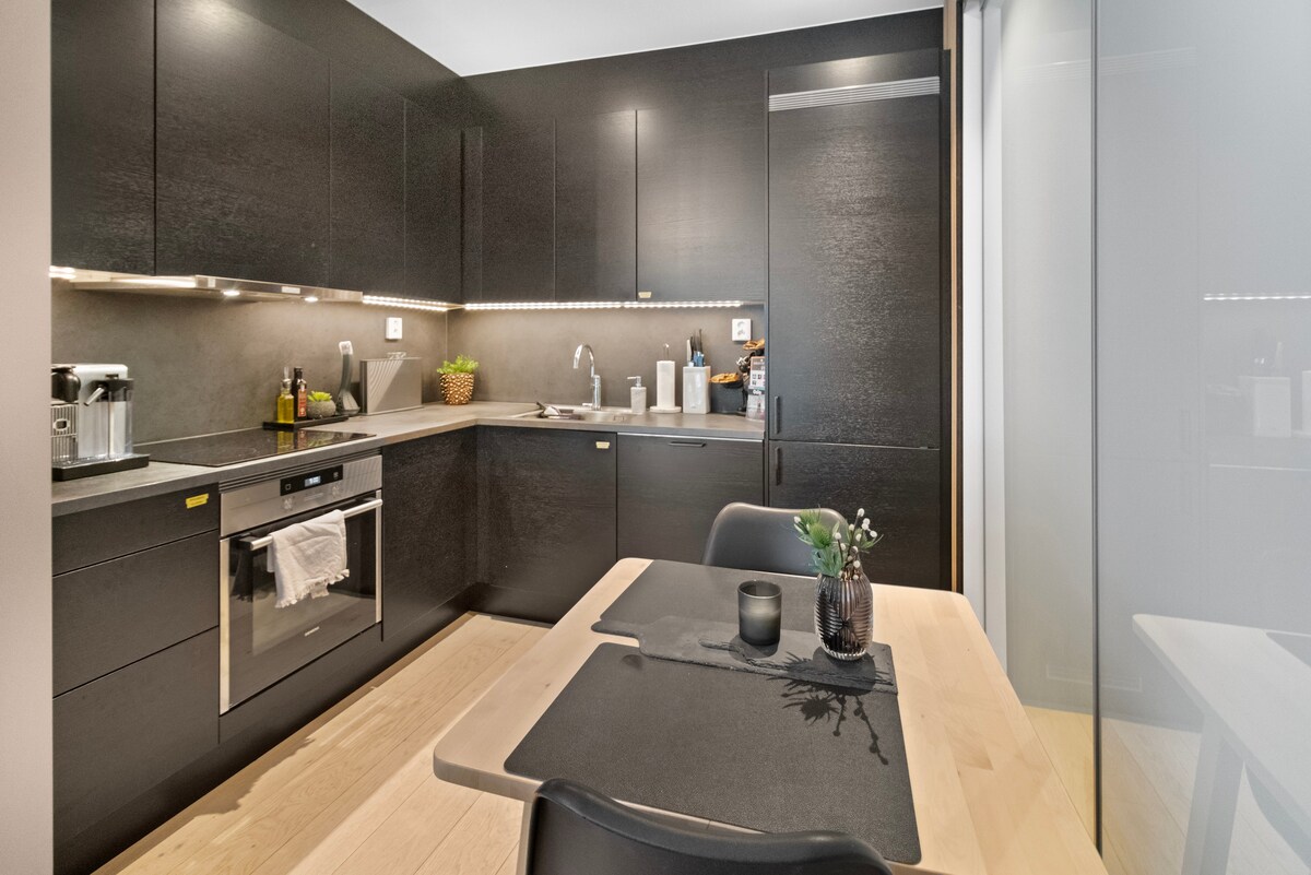 Ito ay isang moderno at naka - istilong 1 silid - tulugan na apartment na may lahat ng kailangan mo sa iconic at bagong binuo na lugar ng Barcode, na nagmamarka sa Oslo bilang isang cutting - edge architectural hub. Ang apartment ay halos 5 minutong lakad lamang mula sa Oslo Central Station at may grocery store sa tapat lamang ng kalye mula sa apartment na bukas hanggang 23:00 (11pm). Ang apartment ay pinaka - angkop para sa 1 - 2 tao, ngunit maaari ring matulog ang 4 na tao na may sofa sa pagtulog na mabuti para sa karagdagang 2 bisita.
