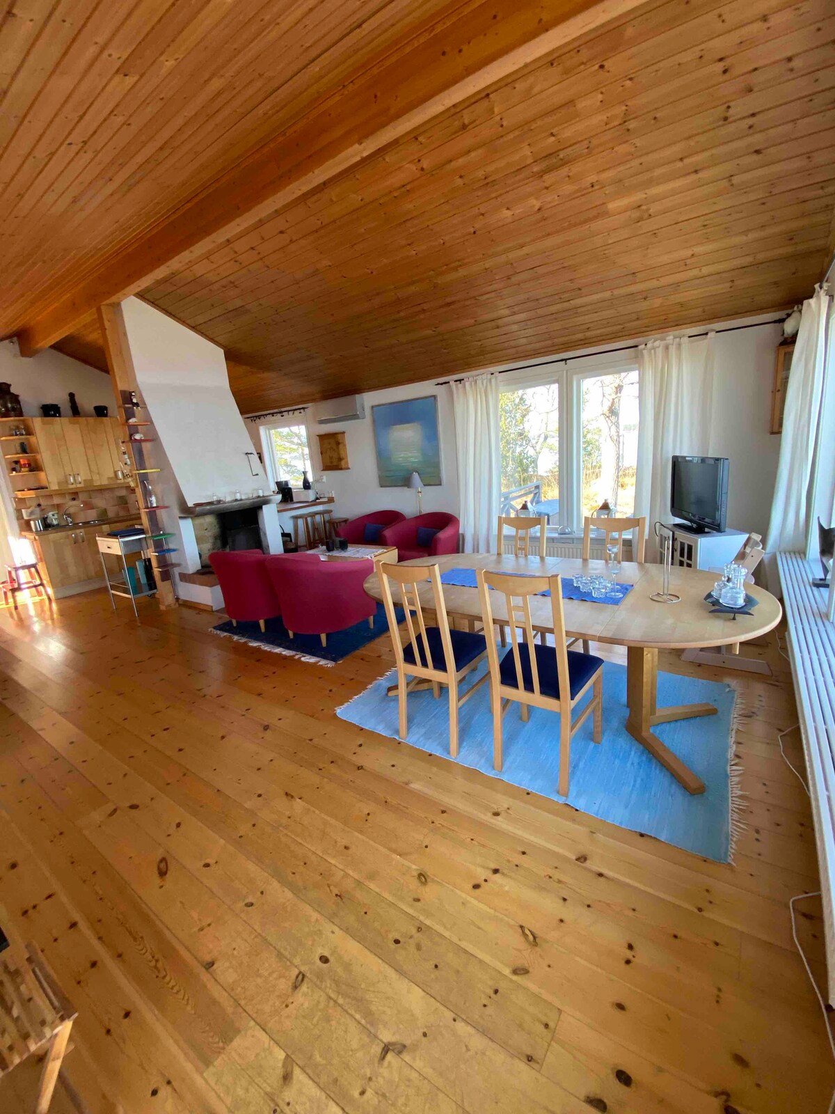 Malaking seafront property na nakaharap sa timog sa Värmdö (35 min mula sa Stockholm) na may mga malalawak na tanawin ng dagat at baybayin ng mga 100 m. Mayroong dalawang bahay, isang pangunahing gusali (190 sqm) at guest house (40 sqm), na parehong matatagpuan 30 metro mula sa tubig, kung saan matatagpuan ang sariling jetty. Doon maaari kang umupo sa isang nakabitin na upuan sa isa sa mga terrace at tamasahin ang walang katulad na magandang tanawin. Ito ay isang pinakamainam na lugar para sa mga pamilya, kaibigan o pagpupulong ng kumpanya sa pinakamagandang lugar ng kapuluan ng Stockholm.