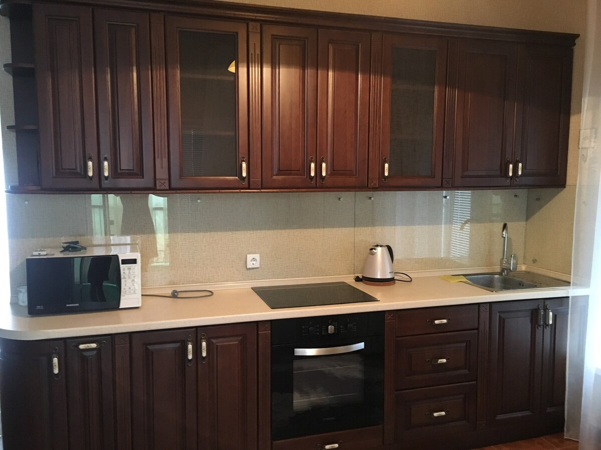 Sa ngayon, matatagpuan ang hotel sa war zone, sa kasamaang - palad, walang paraan para mag - host ng mga bisita. Napakadelikado nito. Maluho ang mga komportableng suite. Tahimik at mapayapang bakasyon. Matatagpuan sa sentro ng lungsod, malapit sa palengke, mga pizza, bar, pambata at sports grounds, museo.