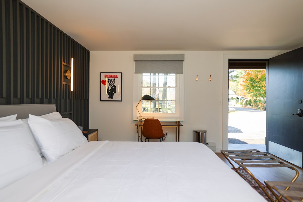 Remodeled Mid-Century Motel, that sits in the heart of the Berkshires. Located in Great Barrington, MA. Just steps from fantastic restaurants, eateries, shops, etc. A very short drive to Butternut Ski Resort. *1.5 miles to Downtown *1.3 miles to Mahaiwe Performing Arts Center *44 miles to Albany International Airport *4.5 miles to Great Barrington Airport *9.9 miles to Tanglewood KEY FEATURES *MCM Design *Plush King Sized Bed high end bed Linens *High Speed Internet *58"Tv with Hulu Live