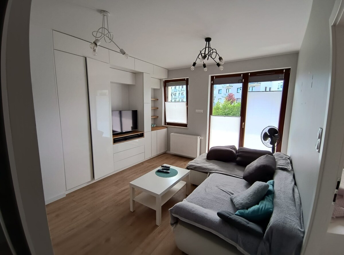 Matatagpuan ang apartment sa ikalawang palapag sa kapitbahayang may mahusay na koneksyon. Kusina na may lahat ng amenidad at kasangkapan. Access sa isang panlabas na paradahan. Mapupuntahan ang sentro ng Gdańsk (5 km) sa loob ng 10 minuto sa pamamagitan ng kotse. Malapit sa apartment (500 m) mayroong bus at tram stop. Mapupuntahan ang paliparan (12 km) sa loob ng wala pang 15 minuto sa pamamagitan ng kotse. 200 metro mula sa apartment ay may shopping arcade (Biedronka, Pepco, Rossman, panaderya, tindahan ng gulay, atbp.)