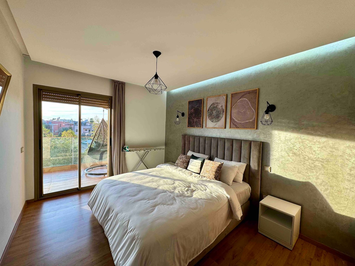 Maginhawa at modernong apartment, malapit sa lahat ng amenidad, ligtas, 100 mega internet speed, Marrakech airport 20 minutong lakad, istasyon ng tren, mga hardin sa tabi , medina.mean ng transportasyon sa tabi ko ay magiging available sa iyo sa buong pamamalagi mo at para gawing hindi malilimutan ang iyong pamamalagi, para sa mga taong si Marie o pamilya , indibidwal, mga dayuhang mag - asawa na hindi kinakailangang nag - aalok kami ng mga espesyalidad na Moroccan na ginawa ko ang mga paglilipat ng paliparan sa madaling araw na inayos