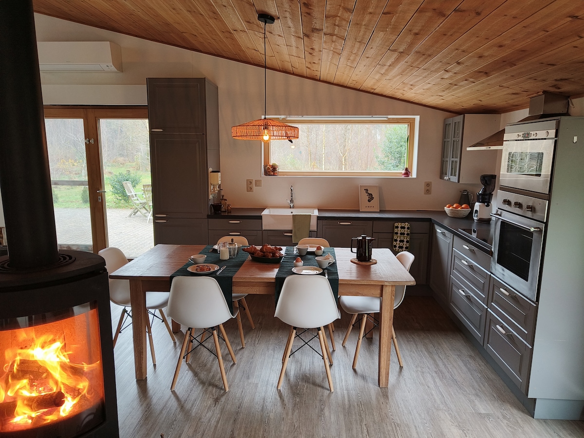 Magrelaks at magrelaks sa aming sustainable na chalet na gawa sa kahoy na may sauna, na ganap na napapalibutan ng kalikasan at kagubatan. Maaari mong tamasahin ang magandang reserba ng kalikasan Goor - Asbroek o pumunta sa sports tour at gamitin ang maraming hiking, pagbibisikleta at mountain bike trail. Sa madaling salita, perpekto para sa isang duo getaway, isang culinary at o aktibong holiday sa naka - istilong luxury chalet na ito. - May mga linen at tuwalya sa paliguan - Electric charging station para sa kotse na available nang may dagdag na bayad at iuulat kapag nag - book