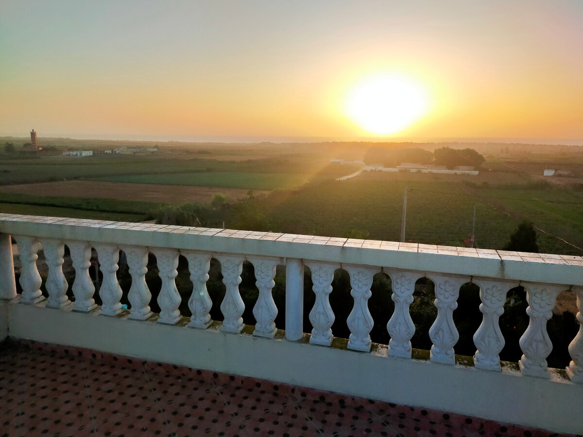 Elégante Maison-villa toute équipée, en location entière, située dans un paisible douar (hameau) à 10 mn de voiture de la Ville de Oualidia, offrant une magnifique vue sur l'océan et les marais salins. C est une jolie maison avec 3 terraces, une avec une splendide vue sur l océan, une ombragée à l entrée et une sur le toit.