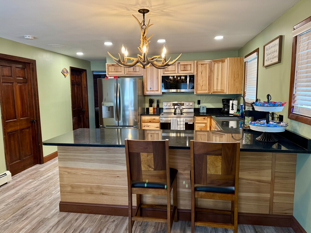Ito ay isang natatanging custom - built 1300sqft ranch home. mayroon itong lahat ng nilalang na ginhawa. Mga minuto mula sa mga restawran at lahat ng uri ng mga tindahan ngunit malapit sa mga atraksyon ng rehiyon ng Adirondack. Isang taong gulang lang ang tuluyang ito. at matatagpuan ito sa isang tahimik na komunidad sa pagsasaka na napapalibutan ng kalikasan na gumigising sa usa sa labas mismo ng bintana ng iyong silid - tulugan. Gusto mong patuloy na bumalik sa napakagandang tuluyan na ito ang iyong pamamalagi.