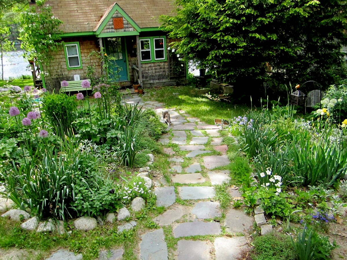 Isang kakaibang camp na may sandaang taon na ang Pebble Cottage at pinalaki ito ilang taon na ang nakalipas. Matatagpuan ito sa Bridgton malapit sa maraming lawa at skiing. Malapit lang ang pampublikong beach kapag bumaba sa burol. Ang kubo ay isang maliit at simpleng kanlungan na nailigtas mula sa demolisyon, at binago gamit ang isang bagong-bagong banyo, isang maliit at magandang kusina na may dishwasher, na may dalawang heat pump upang mapanatiling komportable ang espasyo at tatlong komportable at parang tahanan na silid-tulugan, isang malaking bakuran na may duyan, isang napakatahimik na kanlungan.Tandaang luma ito!