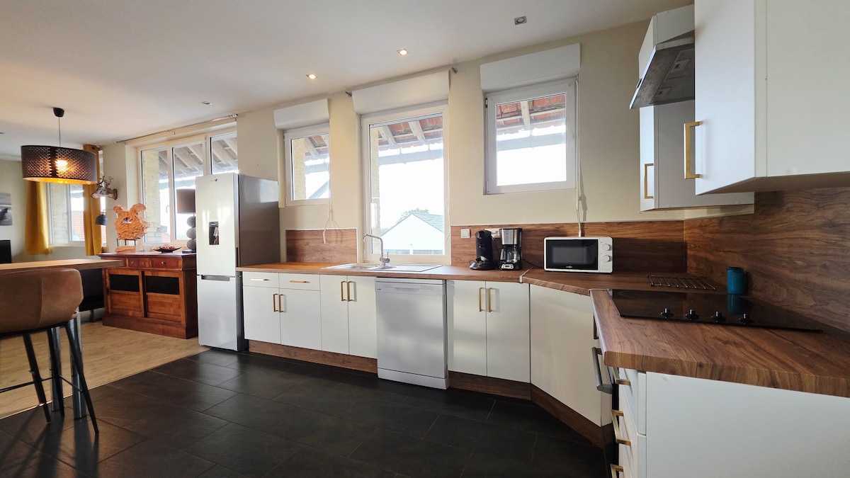 Séjournez dans une maison d’architecte lumineuse, parfaite pour 7 voyageurs classé 4 étoiles sur 5. Profitez de grands espaces, d’une cuisine ouverte et d’un salon chaleureux avec cheminée sous un toit cathédrale. Après une journée à explorer la plage des Escardines ou la réserve du Platier d’Oye, détendez-vous dans notre bain nordique chauffé au bois, idéal pour un moment de bien-être. ✨ Un guide avec nos meilleures adresses et activités locales vous attend pour sublimer votre séjour.
