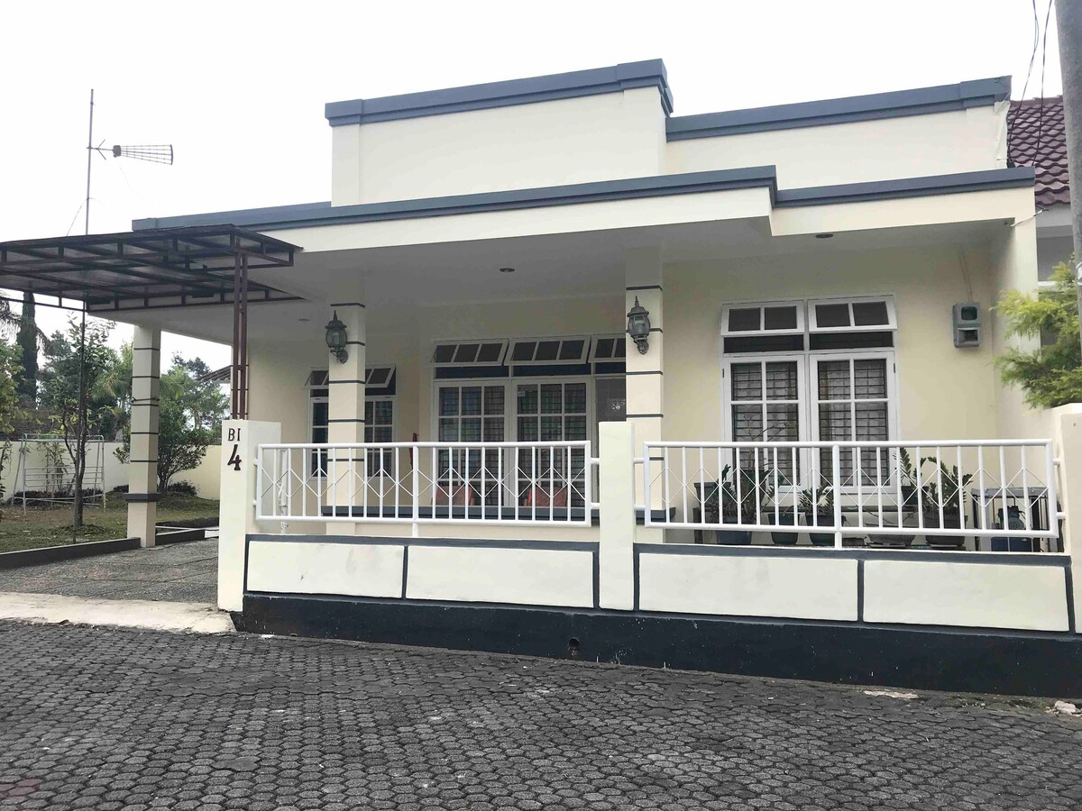 Matatagpuan ang Villa na ito sa Villa Lotus Cipanas, na nag - aalok sa iyo ng malamig na bulubunduking hangin at magandang tanawin ng Mt. Gede. Magandang lugar para tumanggap ng hanggang 14 na tao (ilalapat ang mga singil kung lumampas ang halaga). Mga Pasilidad: - Libreng paradahan, available para sa 4 na puwesto - Karaoke - Pribadong putting berde - Shared na swimming pool - Fitness Center - 24/7 na Seguridad - 2km ang layo mula sa Nicole 's Kitchen - 1.5 km ang layo mula sa Regional Public Hospital - 1.5 km ang layo mula sa Minimarket