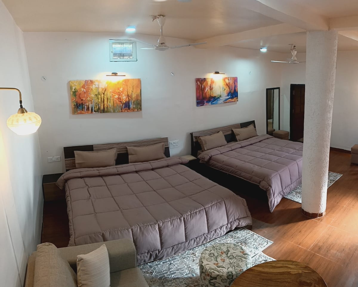 Minimo: Central Pachmarhi Designer Retreat The Union: A unique layout crafted specifically for family togetherness. Capacity: Stylishly hosts 8–10 guests across all rooms. Full Kitchen: Equipped for communal meals and social gatherings. Central Hub: Located in the heart of town, steps from markets and sights. Unique Styling: A modern, curated aesthetic for a standout stay. Enjoy a private, cohesive retreat where design meets connection. Perfect for your next large group getaway!