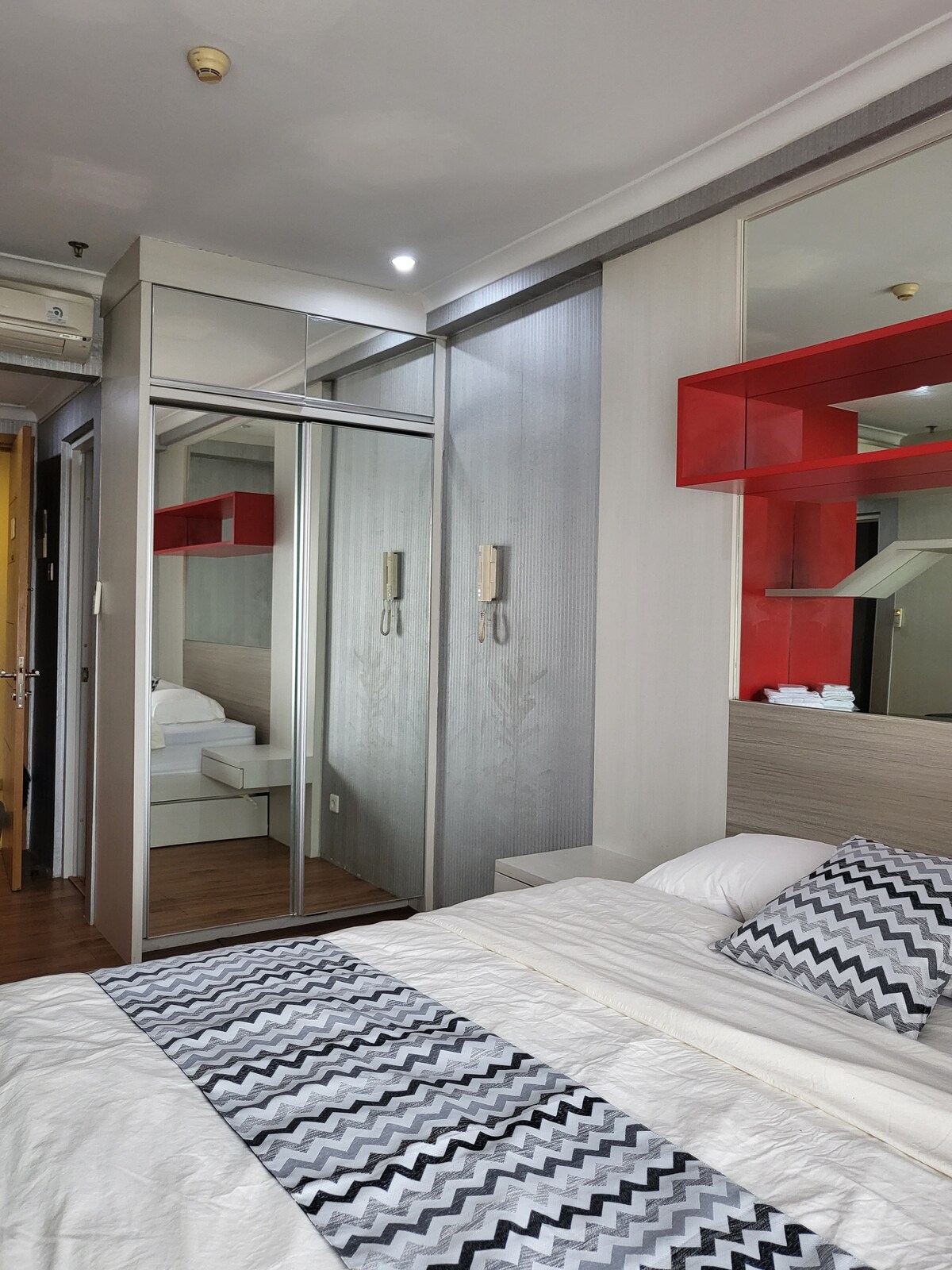- Studio na may kumpletong kagamitan na Thamrin Exec = premium na modernong apartment - Matatagpuan sa @ ang sentro ng lungsod, ang distrito ng Golden Triangle ng CBD (Sudirman - Hamrin - Rasuna Said),Madaling makuha ang transportasyon - Napapalibutan ng mga gusali ng opisina, shopping mall Grand indo,Thamrin city (ang pinakamalalaking batik mall),Food center, 5 star hotel,unibersidad,embahada - 24 na oras na seguridad,Rich facility pool, gym, jaquzi, sauna - Talagang Makatuwirang presyo, disc para sa pangmatagalang pamamalagi - Mainam para sa mga business traveler, mabilis na Unlimitted wifi