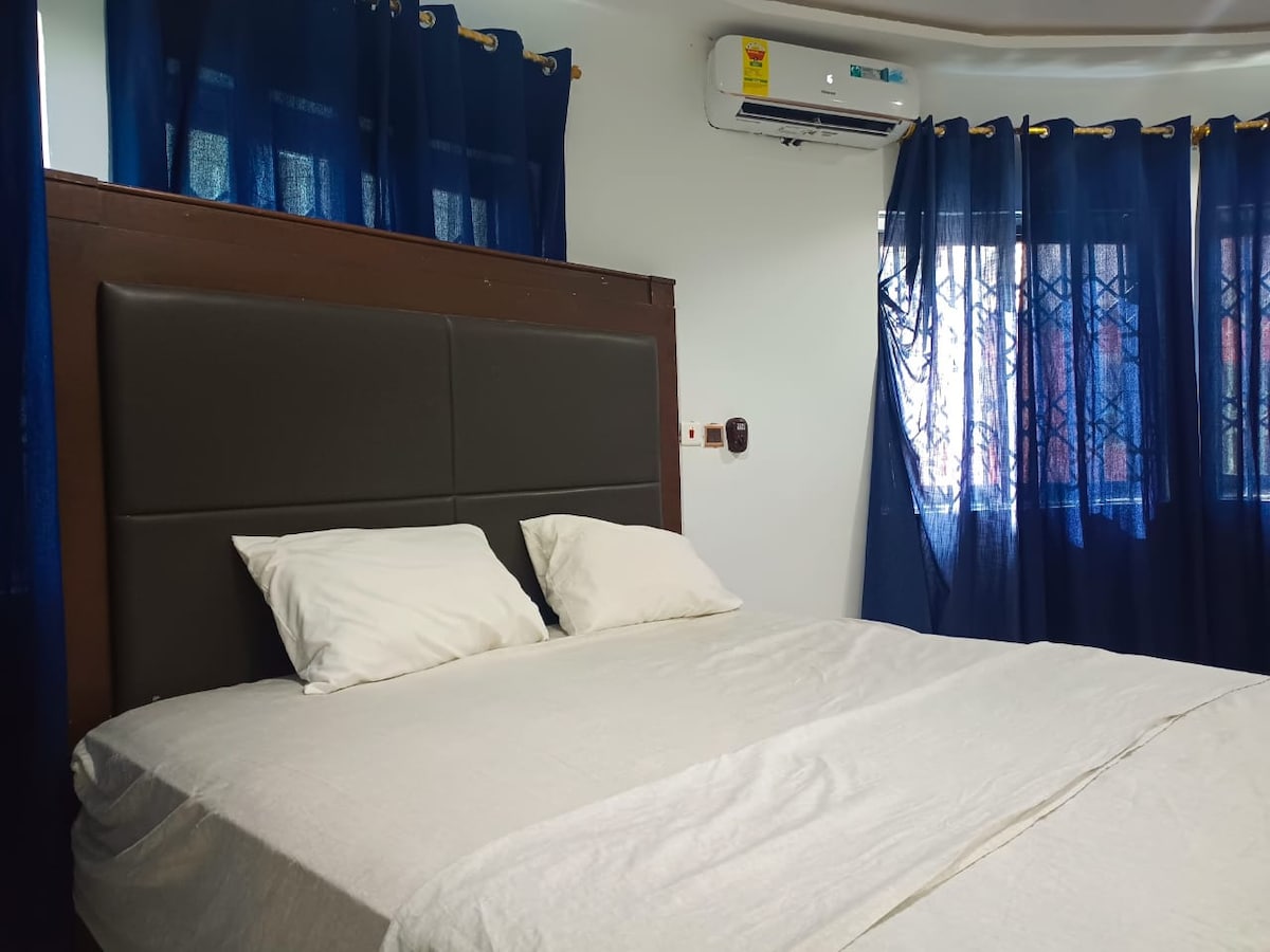 Matatagpuan ang Adua Lodge sa isang ligtas at tahimik na kapaligiran. Matatanggap ka sa aming reception, kung saan puwede kang mag - check in. Mayroon ding common area na may refrigerator at sa likod ng Adua lodge ay may restaurant kung saan puwede kang kumain kapag hiniling. Available ang almusal kung ninanais sa anadditional cost na 10 ghc p.p.
