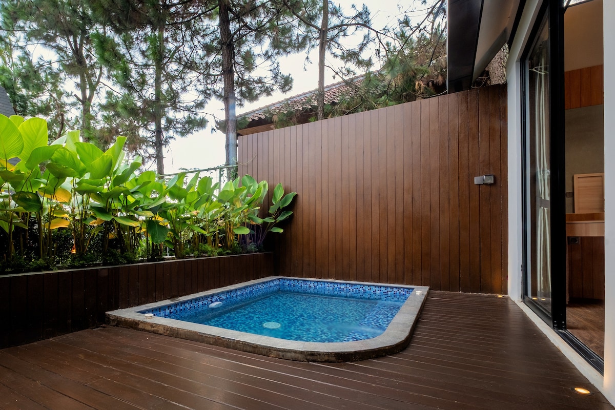 Tuklasin ang Mizu Machiya ng Addo Stays—isang tahimik na villa na may estilo ng Kyoto na may pribadong onsen, tatami loft, reflecting pool, at komportableng kuwartong may bunkbed. Idinisenyo para sa mga pamilya at grupo na naghahanap ng kaginhawaan, estilo, at sariwang hangin ng bundok ng Lembang. Perpekto para sa mga tahimik na bakasyon, pagdiriwang, o nakakarelaks na bakasyong may temang Japanese.