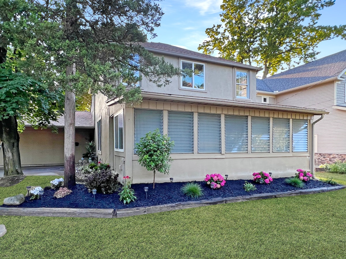Step into the spacious and relaxing 4BR 1Bath girl's getaway located just 1 mi. east of GOTL "The Strip" in the heart of Ashtabula County. Explore GOTL, Historic Ashtabula Harbor, Ohio Wine Country, and much more, or lounge the day away around the fire pit in the private backyard. ✔ 4 Comfortable Bedrooms ✔ Spacious Living Area ✔ Fully Equipped Kitchen ✔ Backyard (BBQ, Fire Pit, Games) ✔ Sunroom ✔ Front Porch ✔ Smart TV ✔ High-Speed Wi-Fi ✔ Free Parking 4 vehicles ✔ Lake View See more below!