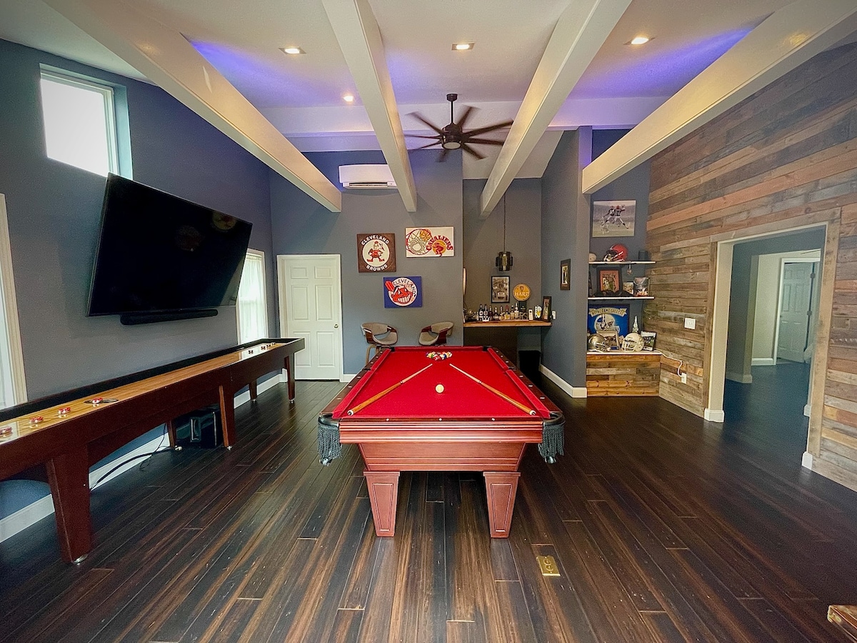 WINTER DISCOUNTS! Gather family or friends for an unforgettable getaway in a spacious, pet-friendly, amenity-rich oasis in a quiet neighborhood. You’ll find fun and relaxation at Serenity At Seven Hills with its loaded gameroom, games, hot tub, Jacuzzi tub, and large, fenced yard. You’ll love the proximity to Cleveland and the garage parking and EV charger. Guests rave about host responsiveness; one guest called it “Best Airbnb we have stayed in.” Everything you need is here.