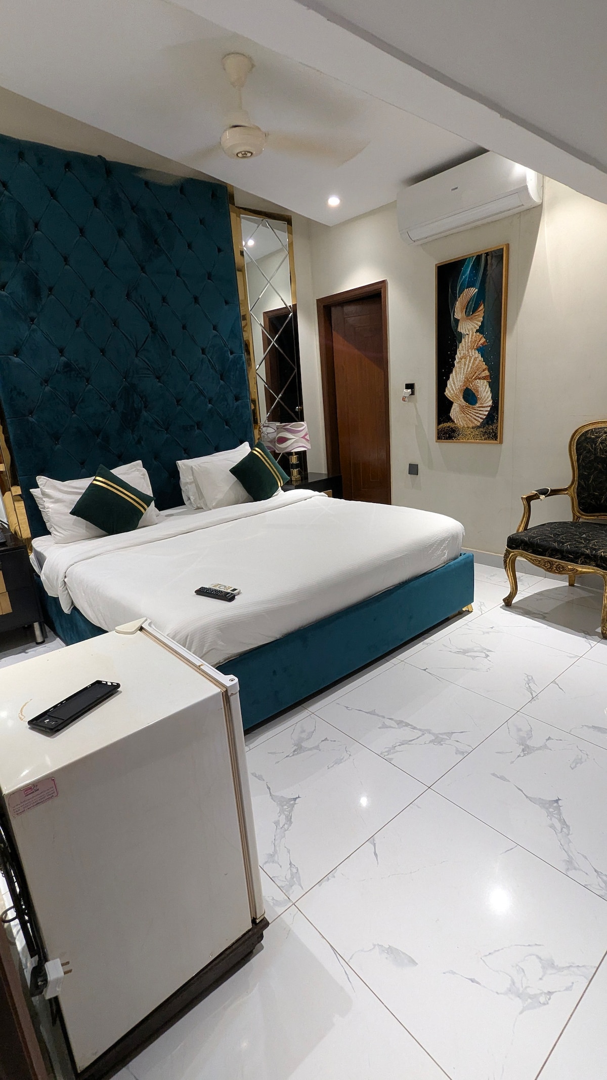 Welcome to the luxury suite, located in G7 Markaz, Islamabad. Our elegantly designed suite offers modern furnishings, a spacious layout, and a private attached bathroom with hot and cold water. Enjoy a flat-screen TV for entertainment and complimentary high-speed Wi-Fi. Start your day with a delicious breakfast for two, included with your stay. 24/7 reception. Conveniently situated near Centaurus Mall and Faisal Mosque, our hotel guarantees an unforgettable experience.