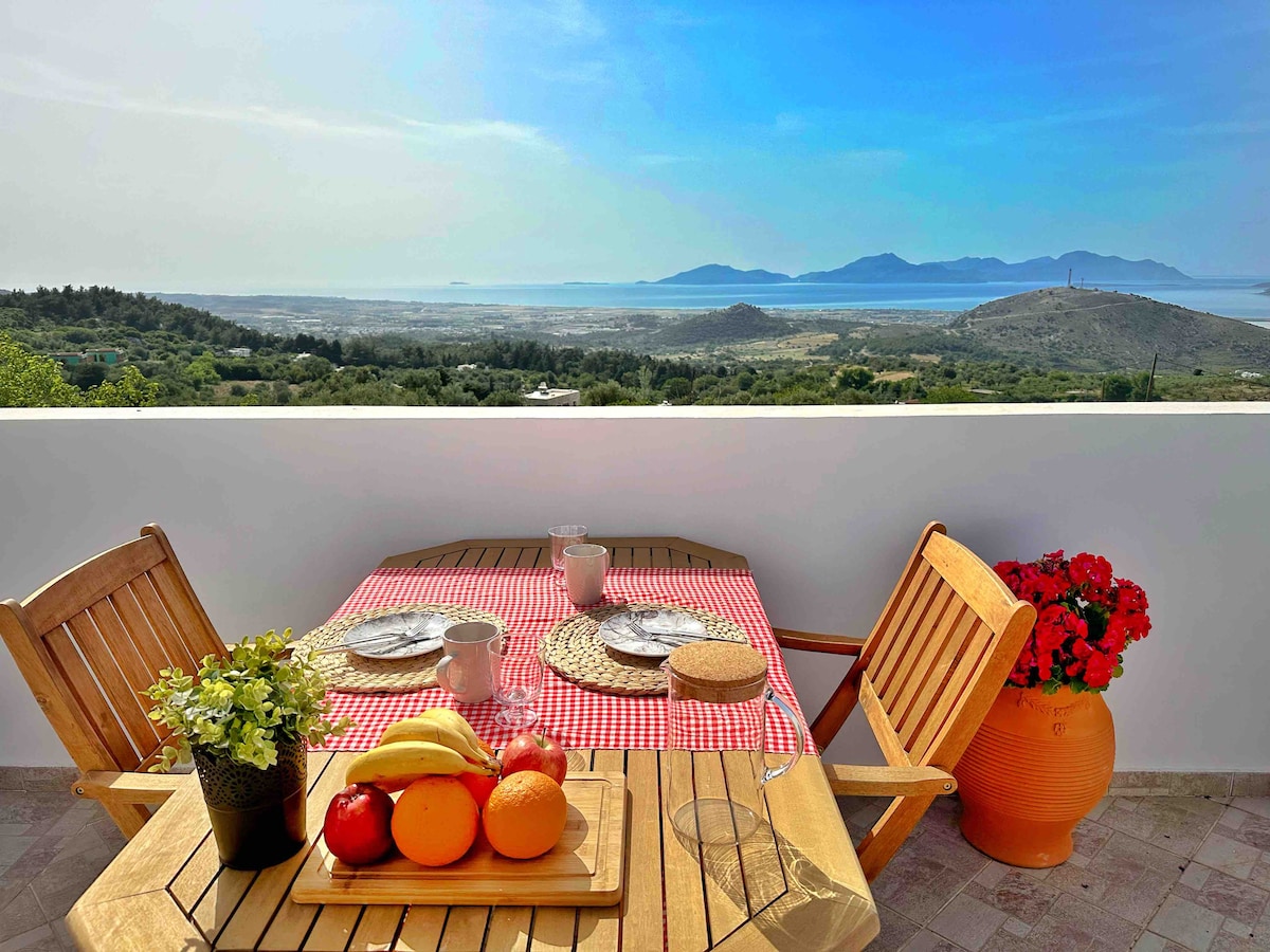 Cielo is a comfortable apartment renovated in 2023,designed to provide you with moments of relaxation & rest! It includes an outdoor sea view terrace with pallet furniture, ideal for cosy summer nights. Located in Zipari area, the apartment is within a walking distance from sandy Tigaki beach (1km). It is located 15km from the airport of Kos & 6km from the Kos town. Traditional Zia village, where you can enjoy beautiful panoramic sunsets & traditional cuisine is only 4km away.