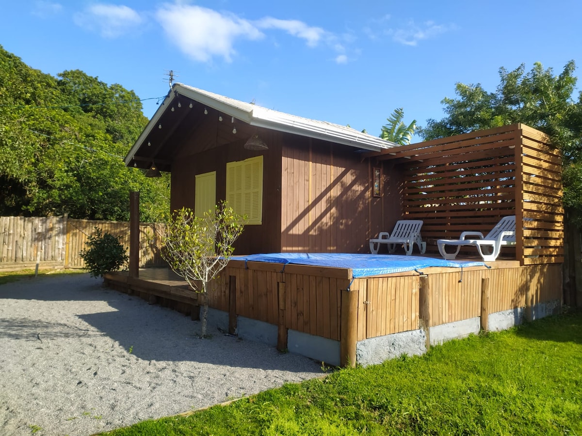 Ang 4 Cabins ay 150 metro mula sa dagat, lahat sa rustic wood. 2 silid - tulugan, isang may aircon at isang may bentilador. TUMATANGGAP NG 6 na TAO . Kusina na nilagyan ng refrigerator, kalan, lababo, microwave, electric kettle, mga kagamitan: pinggan, kubyertos, kawali... 1 ganap na indibidwal na panloob na banyo Living room na may 32 "TV, sofa bed , WiFi ; mesa para sa 6 na upuan; Indibidwal na panlabas na barbecue na may mga skewers; Saradong paradahan; 3 minutong lakad mula sa beach, 2 pamilihan sa sulok ng kalye.