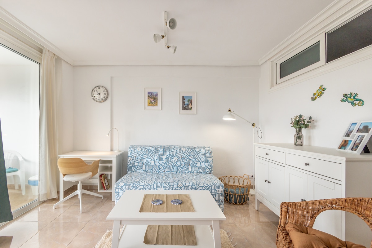 Ang apartment ay kamakailan - lamang na renovated, ito ay kumpleto sa kagamitan at pinong inayos. Binubuo ito ng silid - tulugan, kusina at tirahan, banyo at malaking pribadong terrace sa itaas ng gusali na ibinahagi sa iba pang dalawang apartment sa gusali. Matatagpuan ang apartment sa La Caleta, ilang minuto ang layo mula sa Parque Protegido at limang minutong lakad mula sa beach. Available ang parking space at limang minutong distansya ang hintuan ng bus